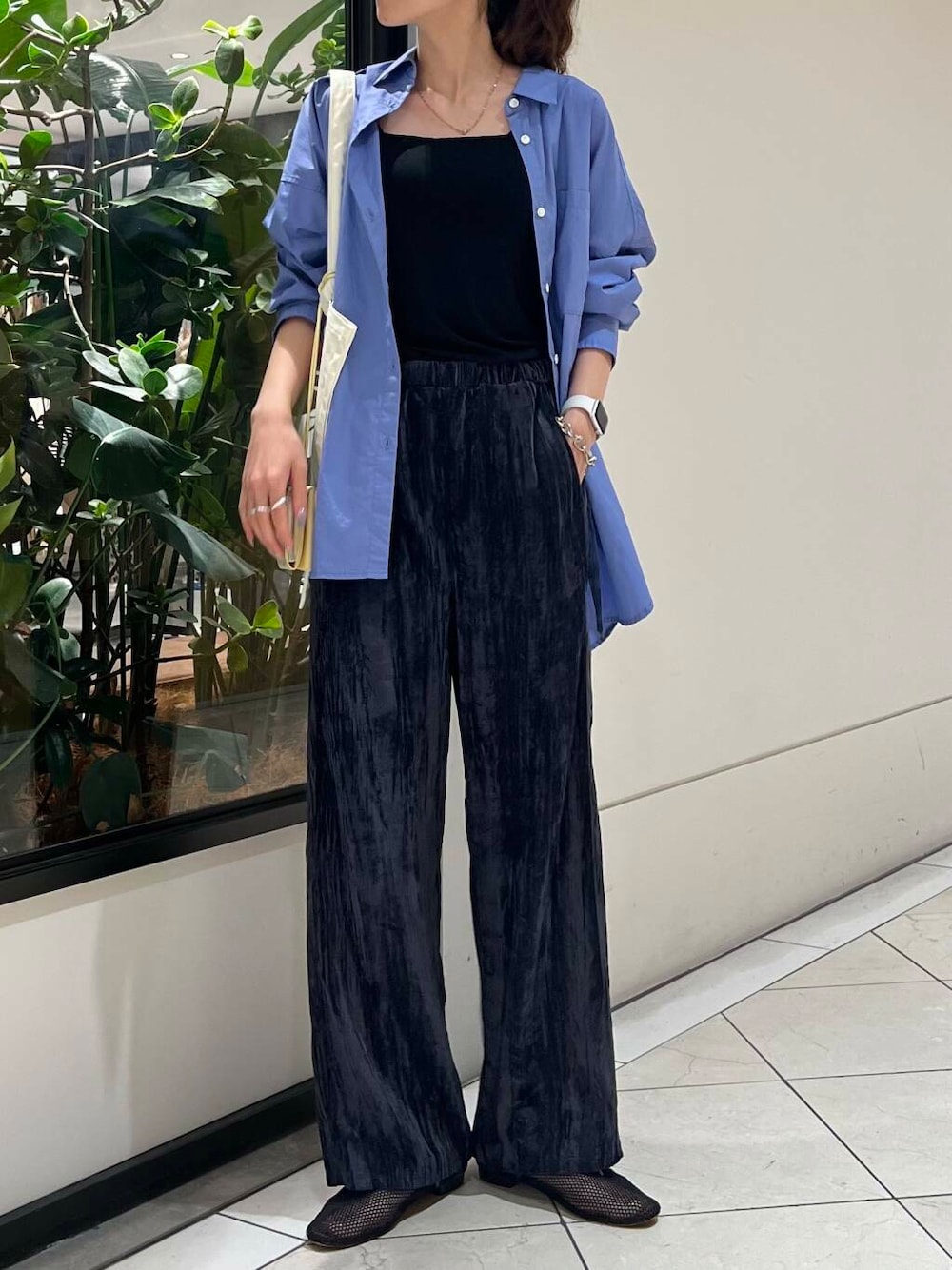 ベロアの素材ですが、暑苦しくなく秋先取りで履けそうです🍁✨