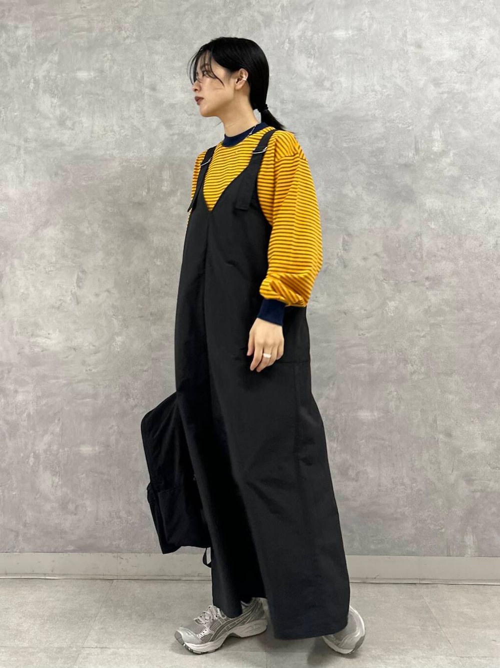 キャッチーな配色が可愛いL.L.BeanのロンTはあまりワイドすぎないサイズ感なので、ジャンパースカートなどのインナーにもおすすめです。