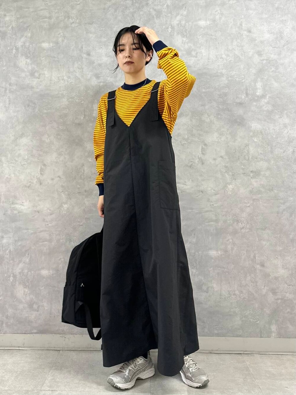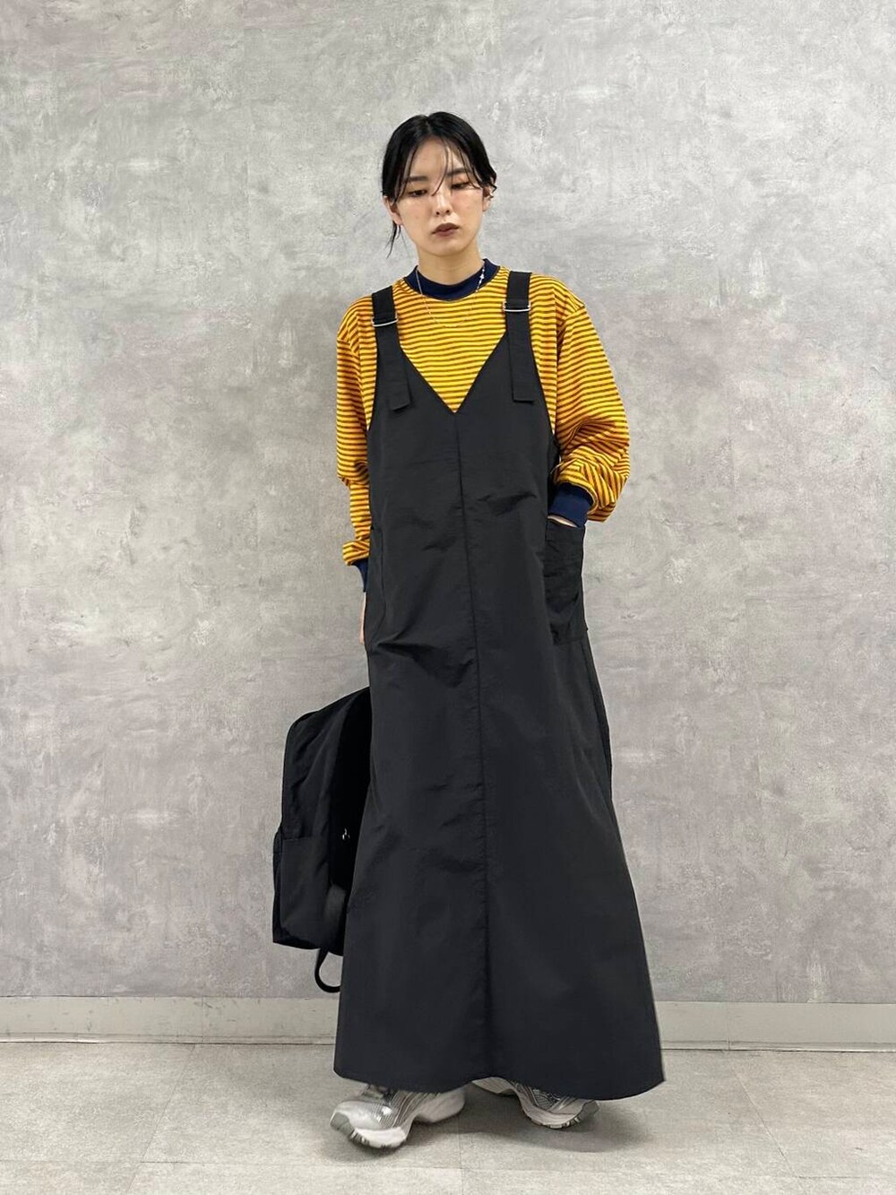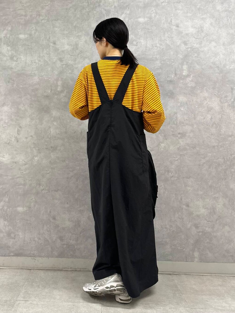 ジャンパースカートはミリタリーライクなナイロン素材を使用し、着心地軽くアクティブスタイルにもおすすめの一枚です。