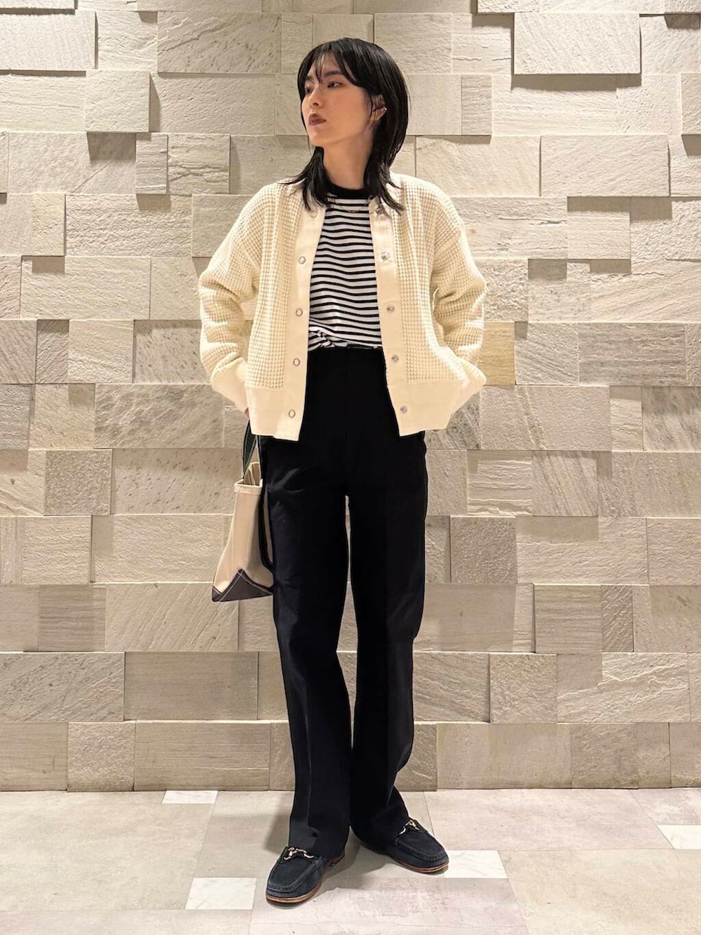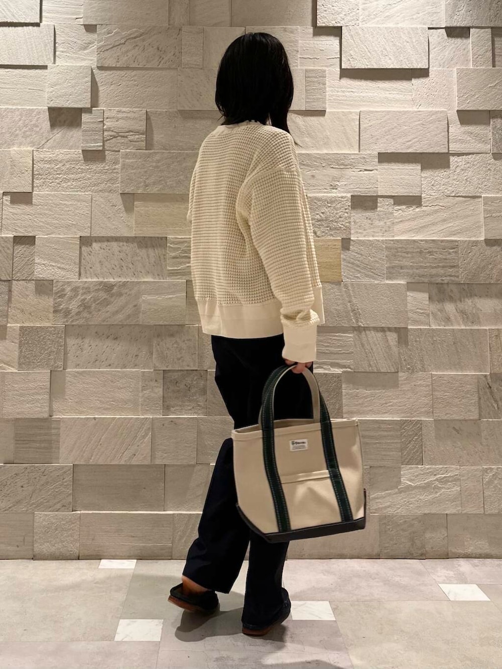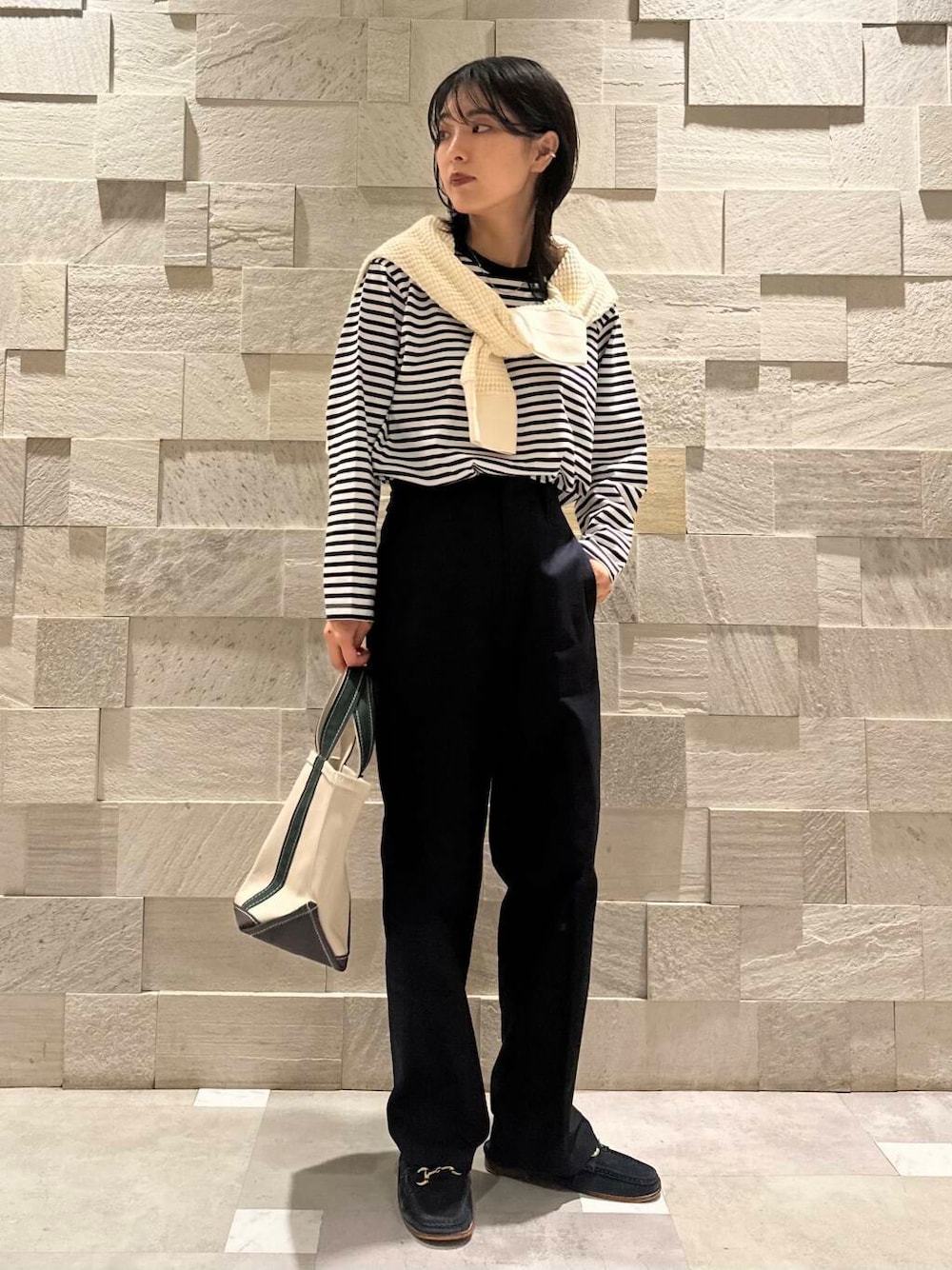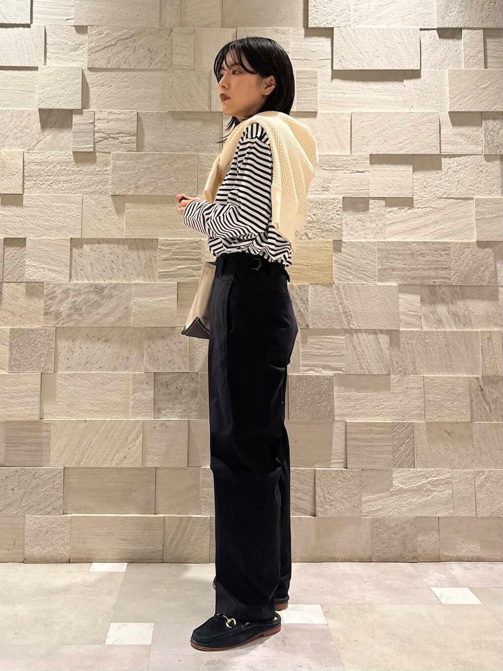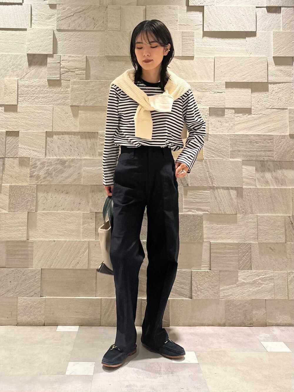 ウエストは元は少しゆったり、ベルト全開で絞るとジャストサイズな体感です。これからの季節タックインするトップスの厚みによって調節できるのが嬉しいところですね…。