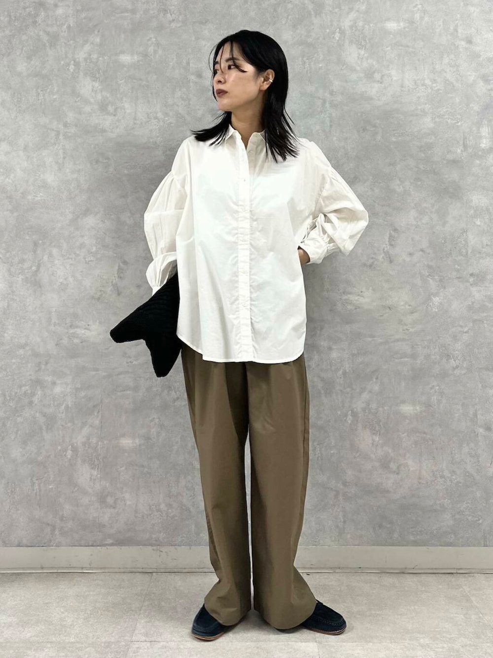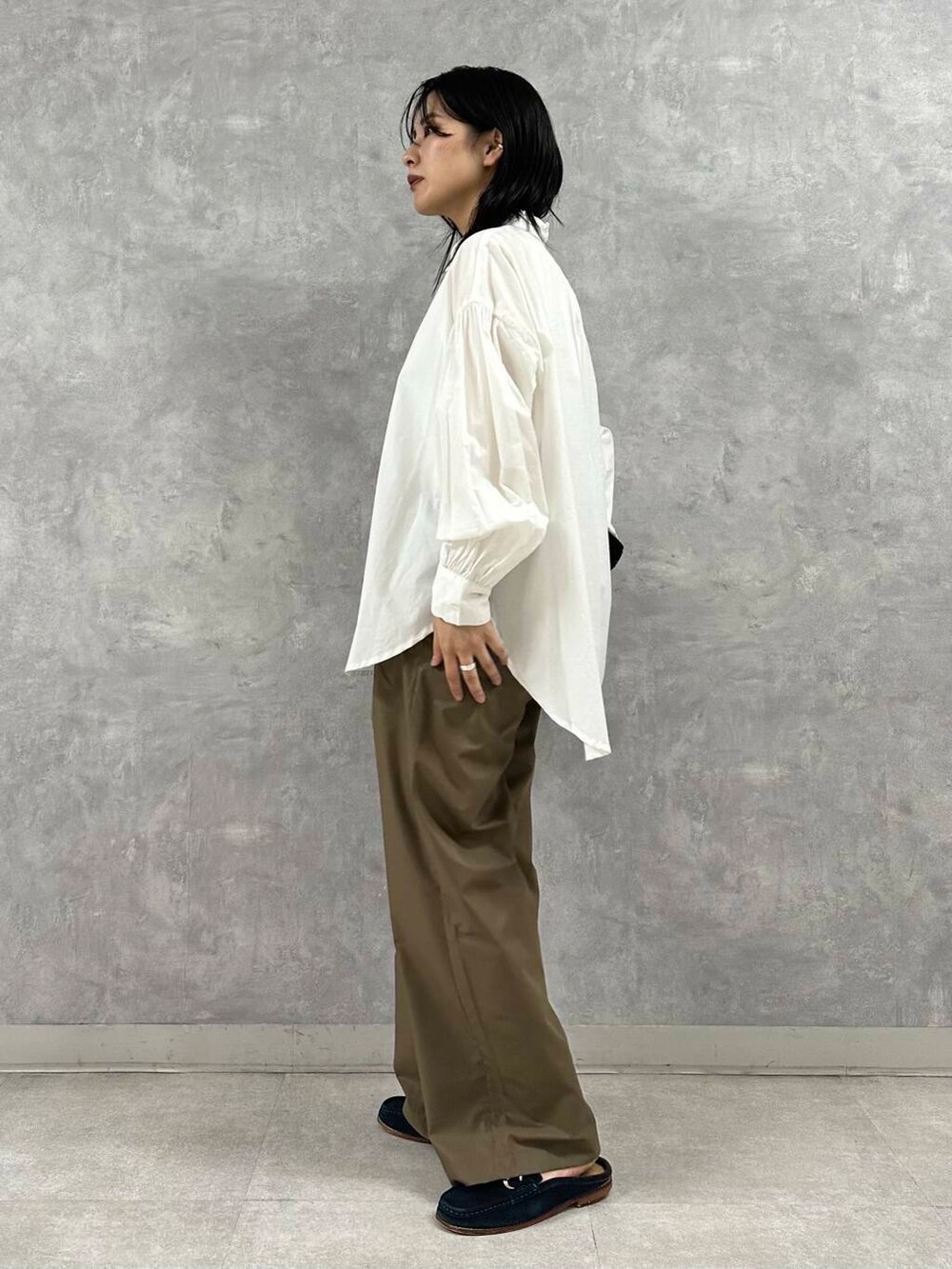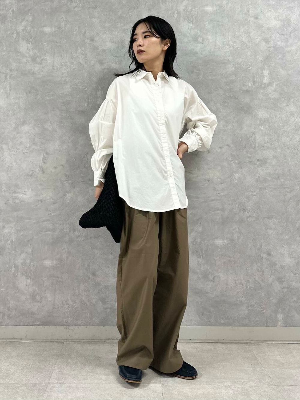 ボリュームのある袖が程よく甘さをくれるブラウス、丈も長めの作りなので細めのパンツや、ショートパンツで合わせてのトレンドスタイルにもおすすめです。