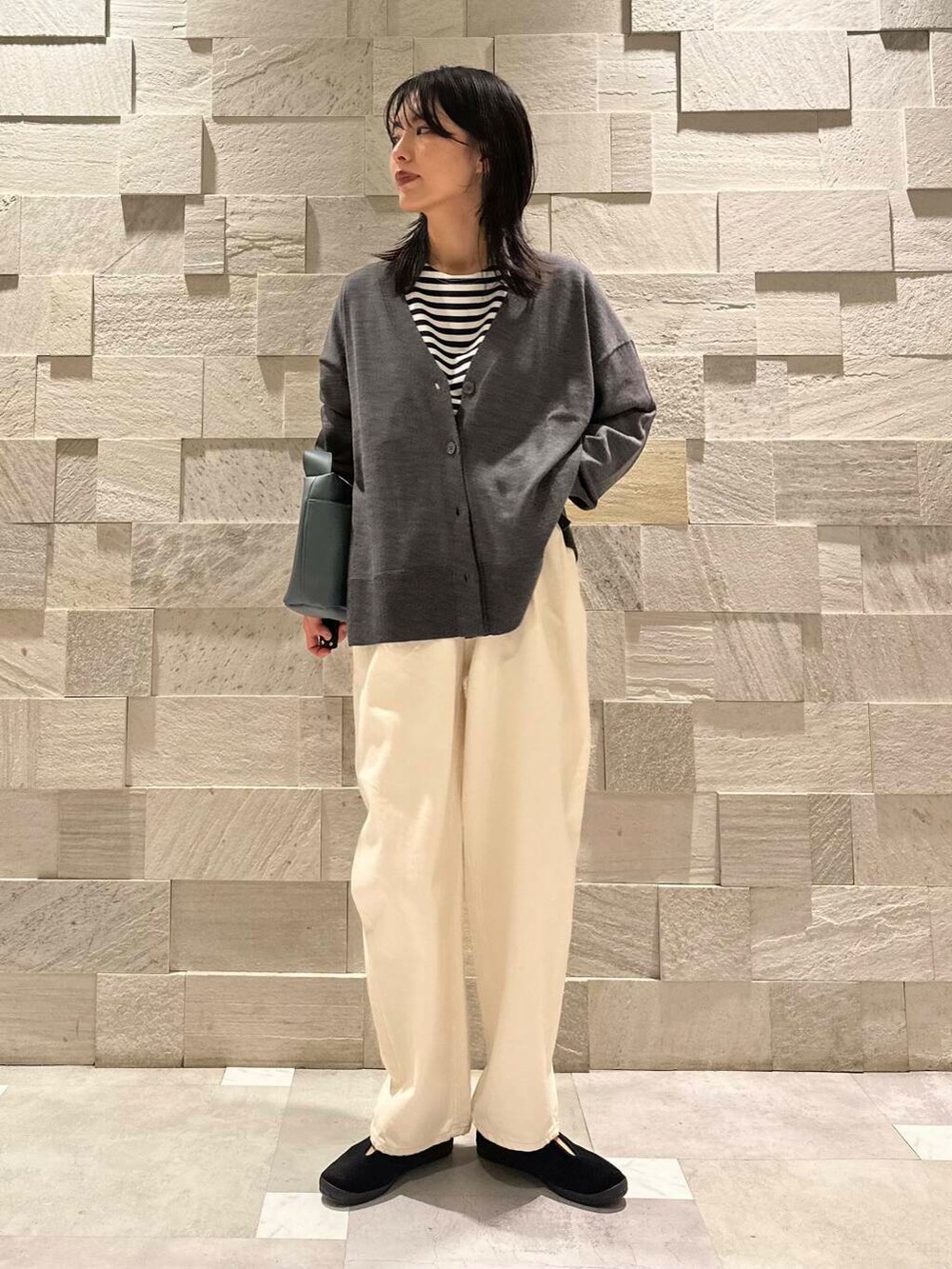 洗えるウールは一枚あると心強いですよねえ…。てろっと落ち感のあるニットカーディガンは、このしなやかなドレープ感が、上品なスタイリングに仕上げてくれます。