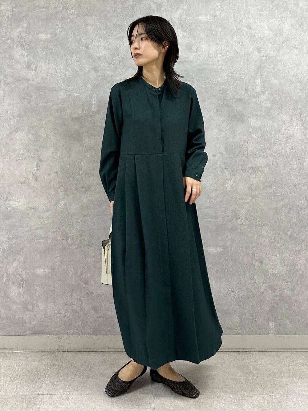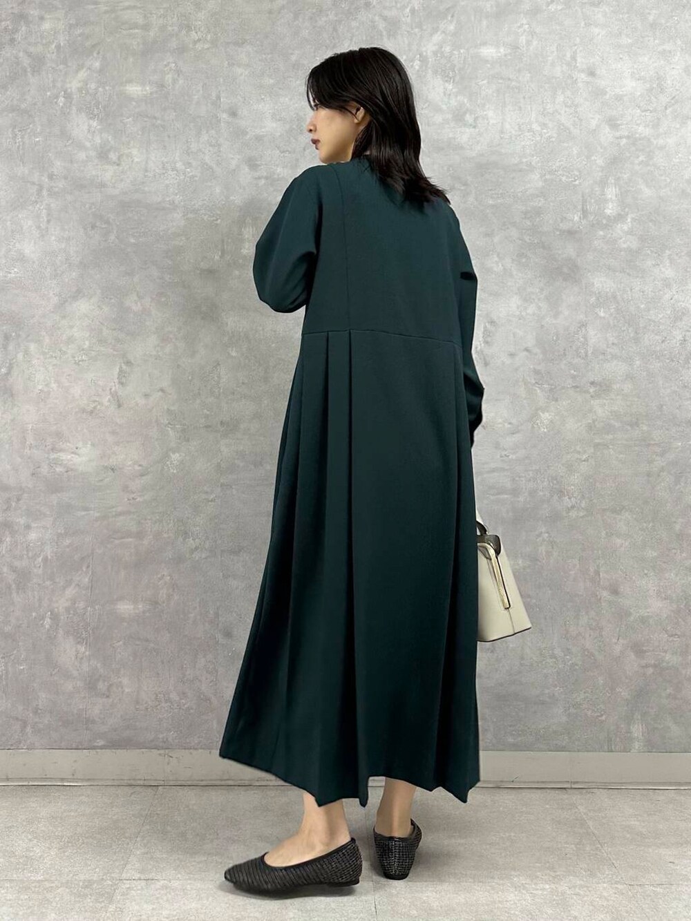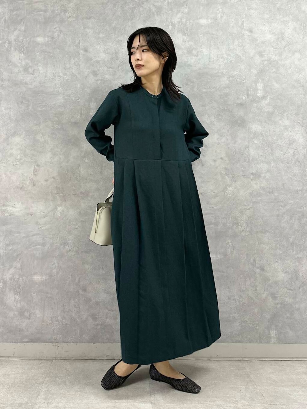 秋のオフィススタイルにおすすめのプリーツワンピース。