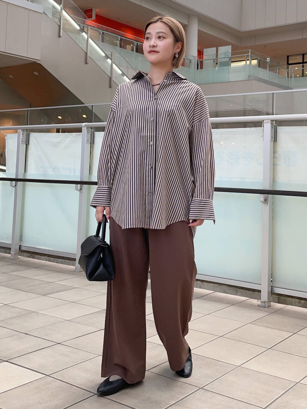 ストライプが目を引くシャツは、