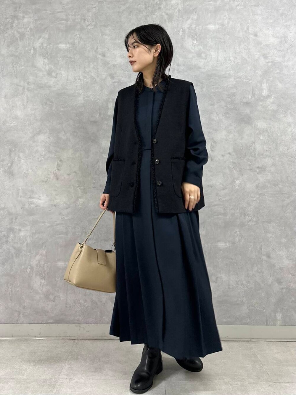 幅もあまり広すぎないので、羽織った時にワンピースと馴染みやすいことシルエットもいいですね。