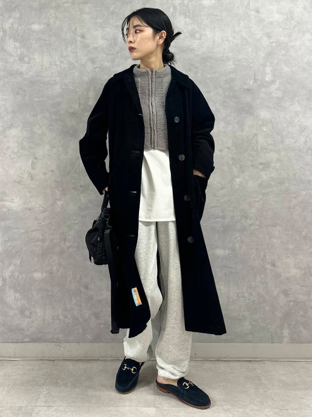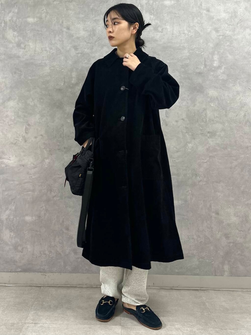 ロングコートは今回はコーデュロイをチョイスして、すっかり秋ムードに。