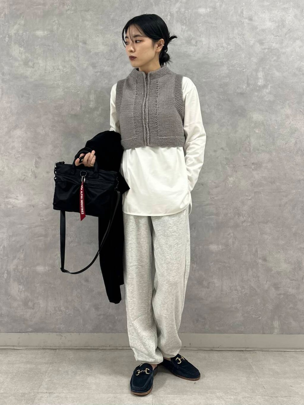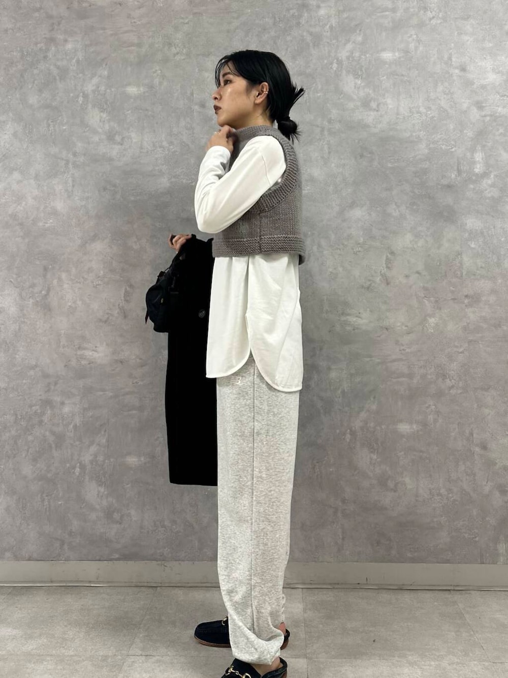 カットソーとレイヤードして合わせていただくことで、アウターを羽織った際にもスタイリングにメリハリが生まれ、低身長の方でもすっきりとしたバランスで着ていただけます。