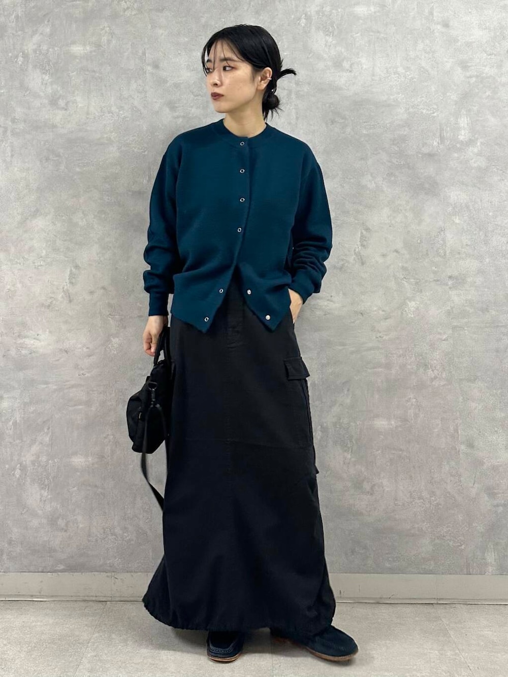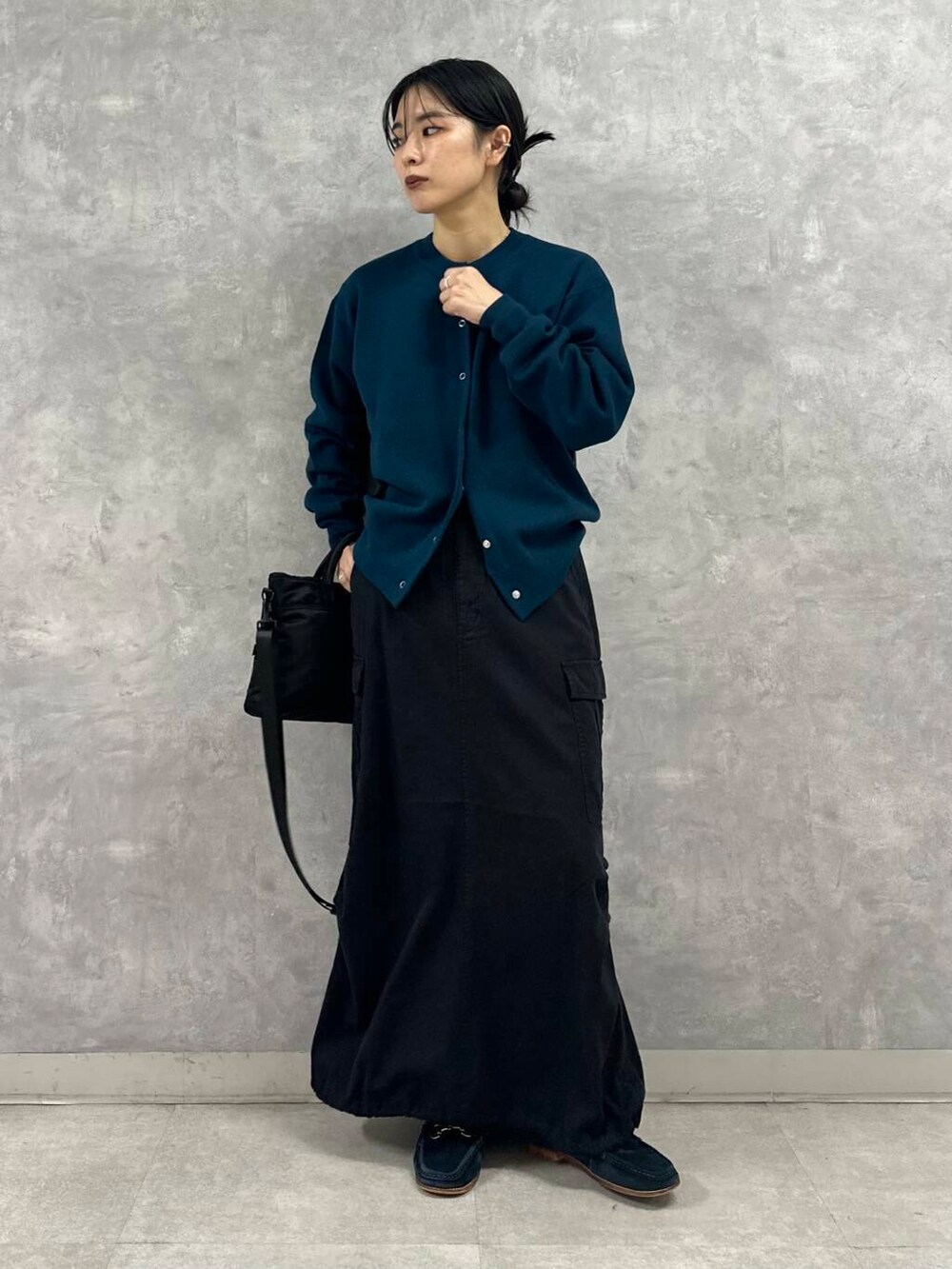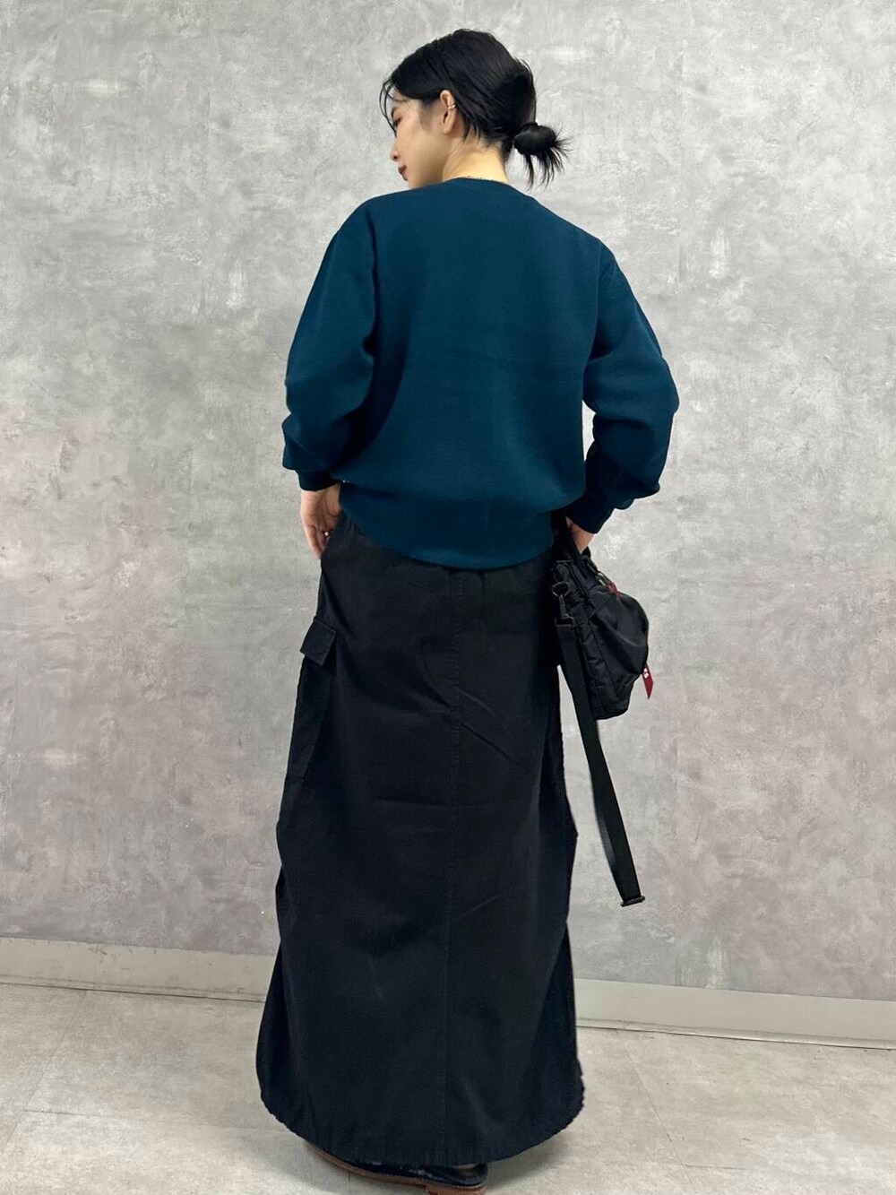 今回はカーゴデザインのスカートを合わせてのカジュアルミックススタイルに。