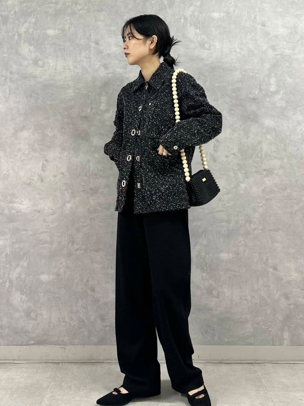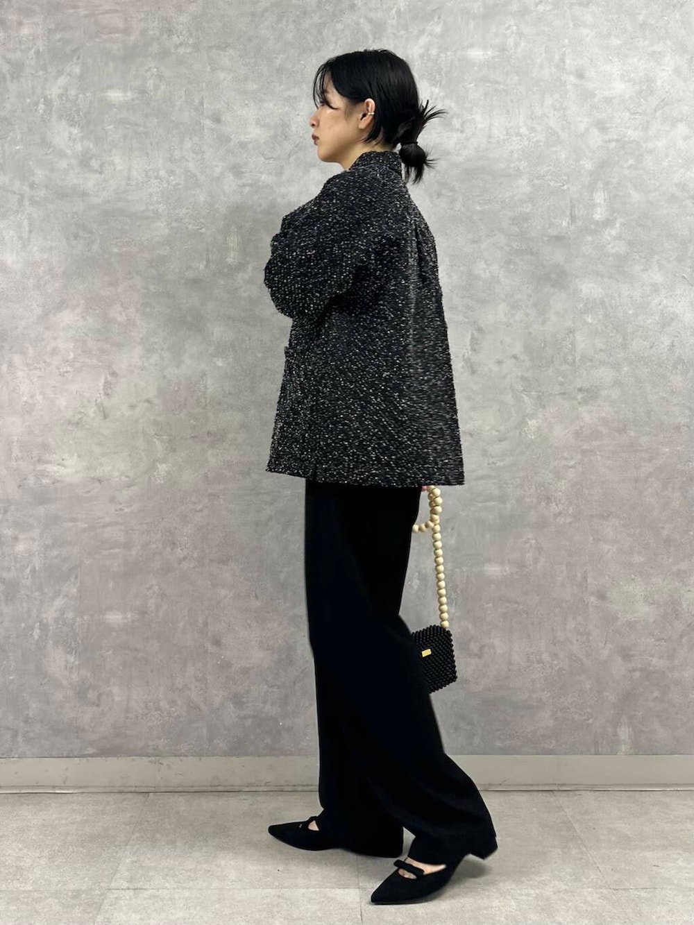 程よく肩はゆったり、身幅は広過ぎないボックスラインで、なんだか懐かしさもあるラインです。
