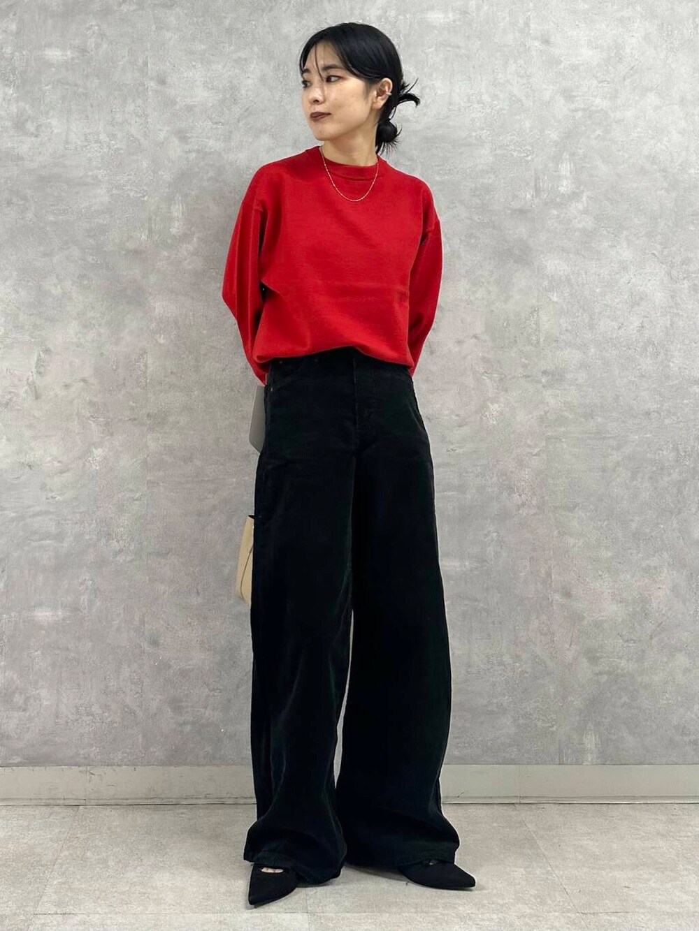 lee×DOORSのワイドパンツは、細畝のコーデュロイを使用しやわらかくドレープ感の出る一枚。