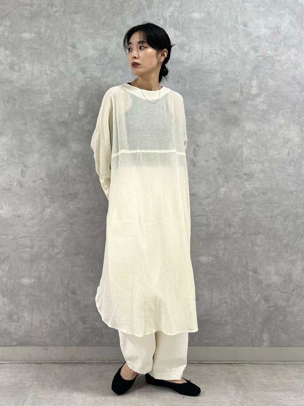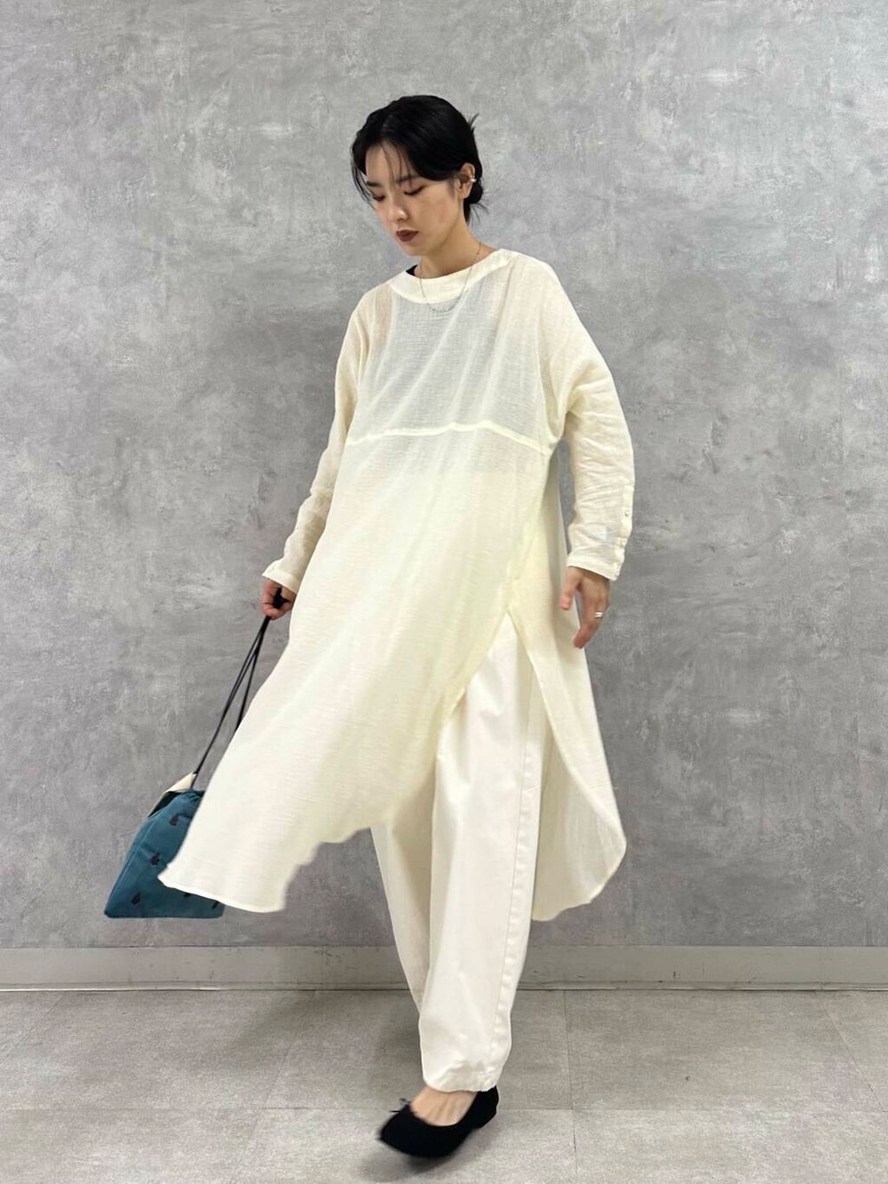 インナーのスリットワンピースもふとした動きにふわっと広がる柔らかい素材。