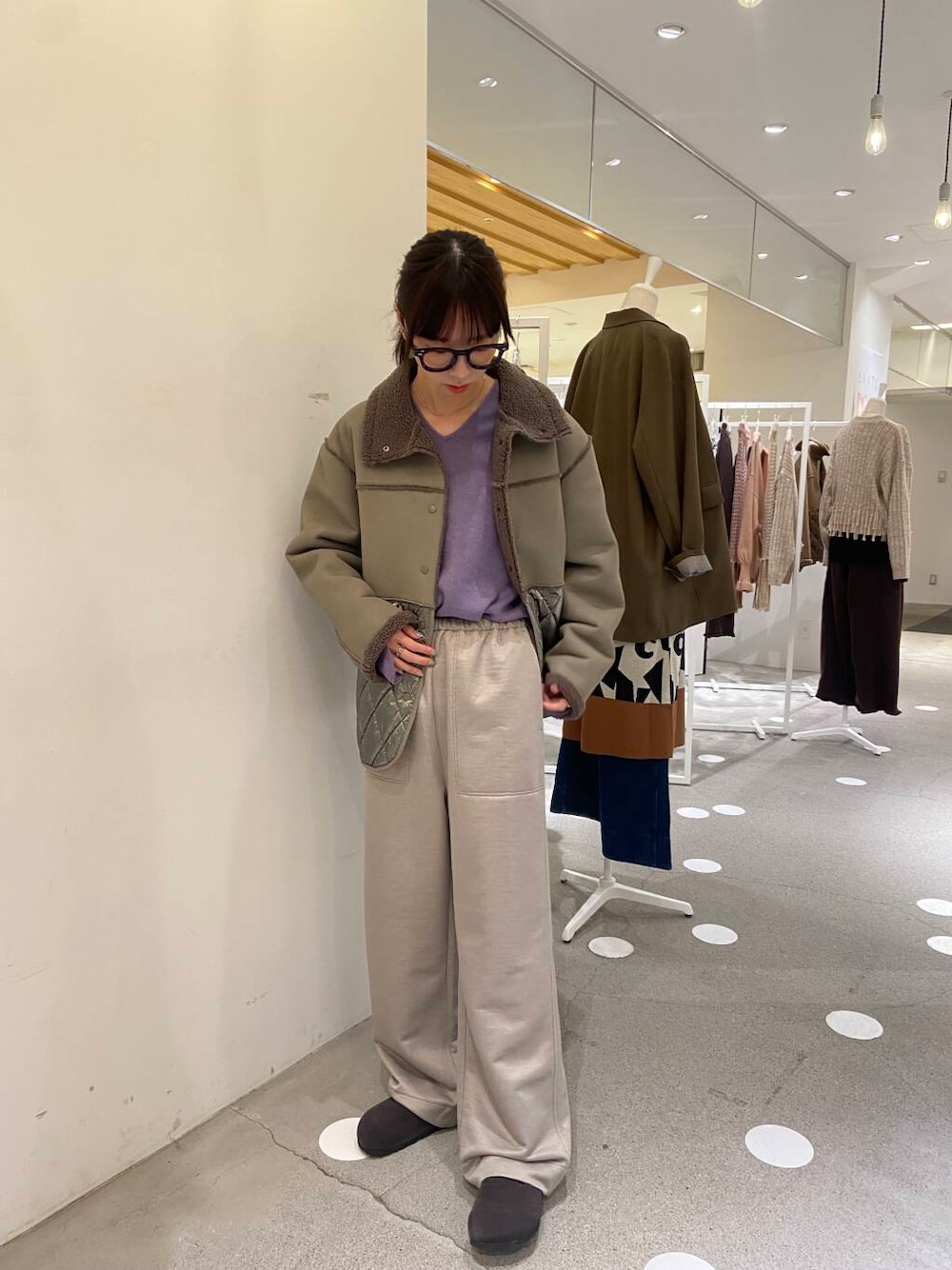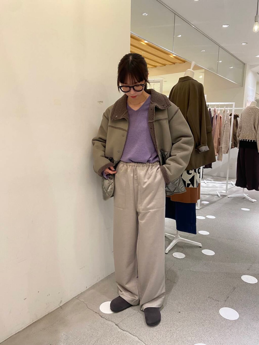 パンツはよく見るとグリーンのステッチが入っているのでアウターのグレーとカーキの間のような絶妙カラーとよく合います、、💘