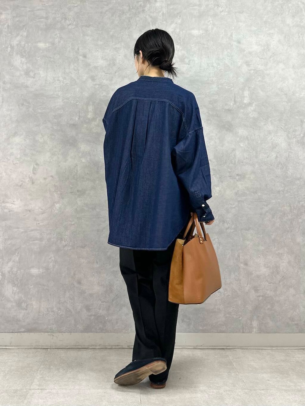 デニムシャツでも柔らかさのある素材を使用しているため、メンズライク過ぎず、程よく女性らしい品のある一枚。