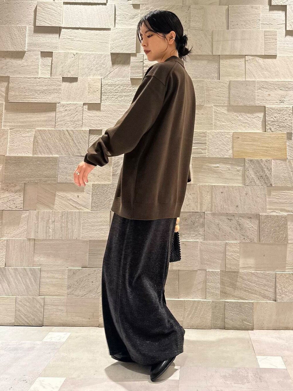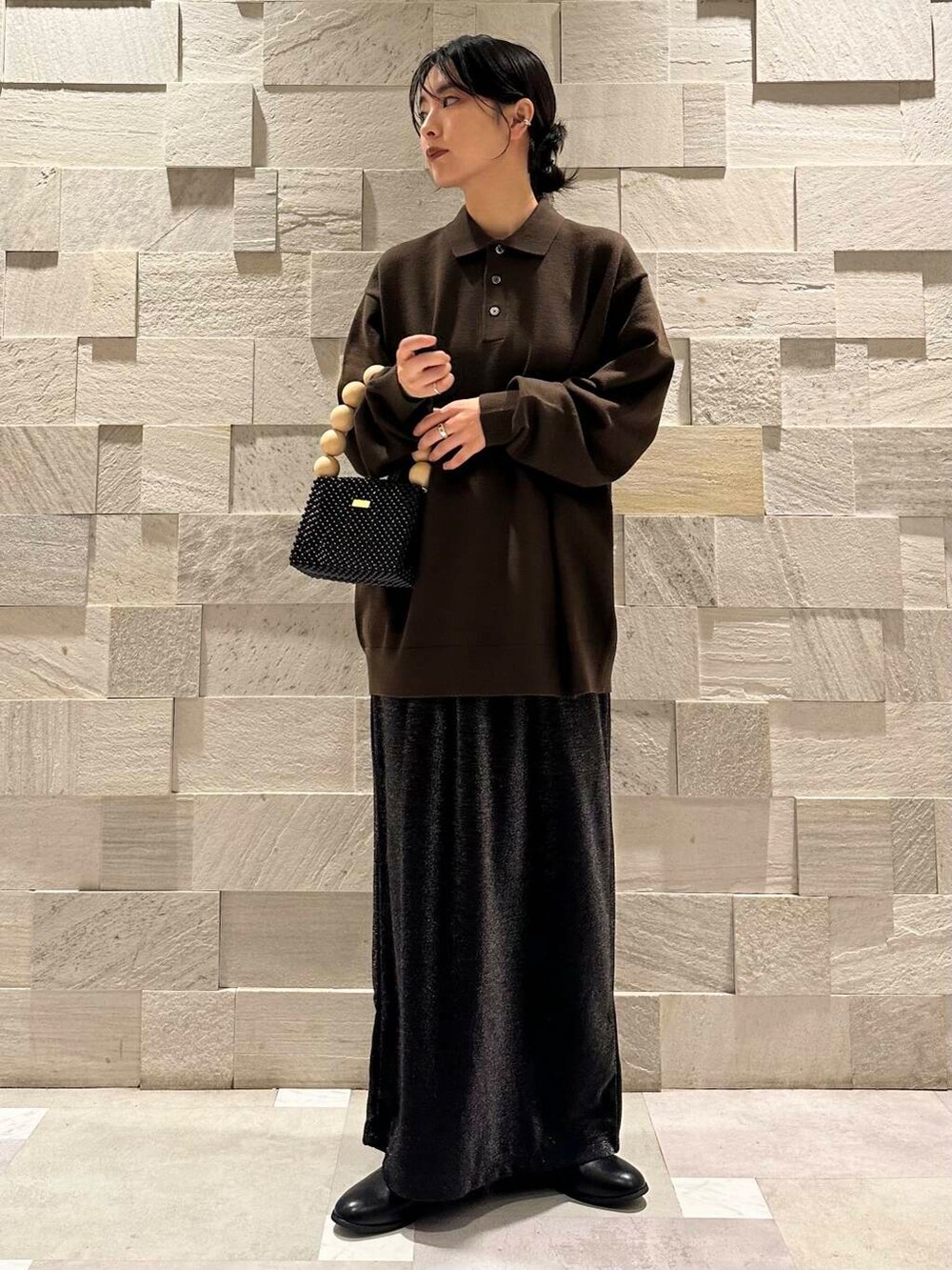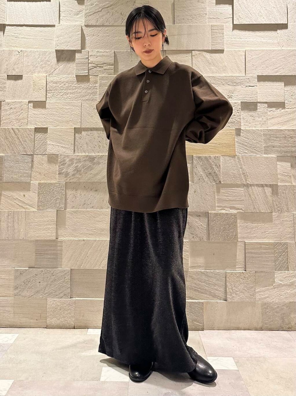 メンズのニットポロはやわらかくくたっと馴染む素材感で、レディースの着用にもおすすめの一枚です。