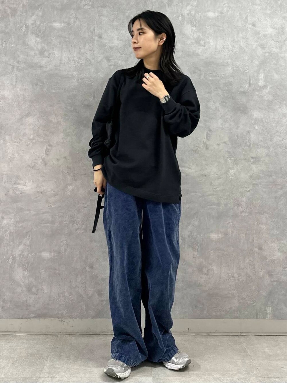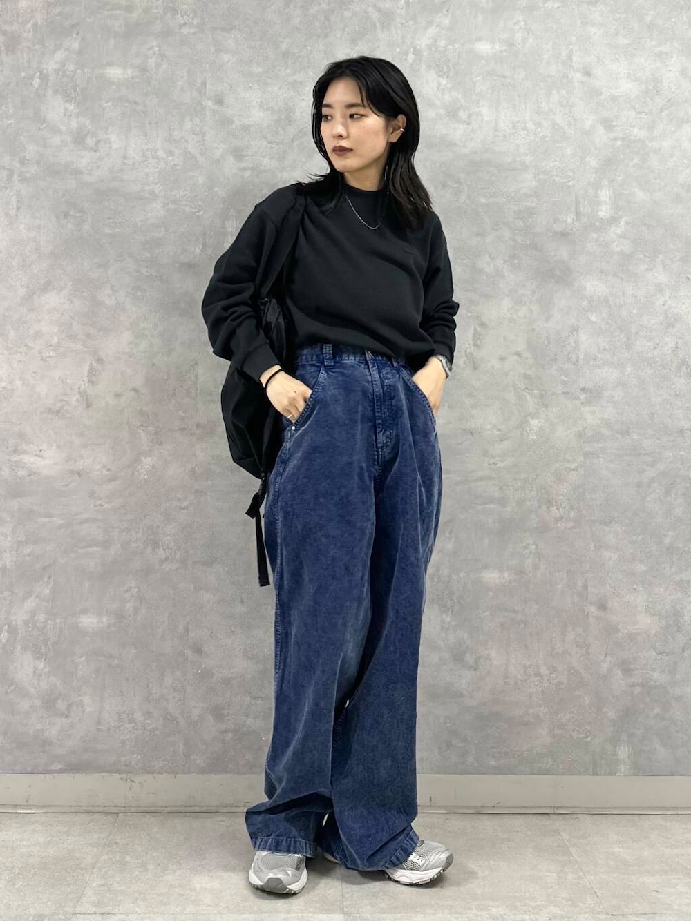 ストリートムードの高まるバギーデザインのパンツ。生地が柔らかい為、大胆なワイドながら着膨れせず、女性らしいドレープ感も出しつつ合わせていただけます。