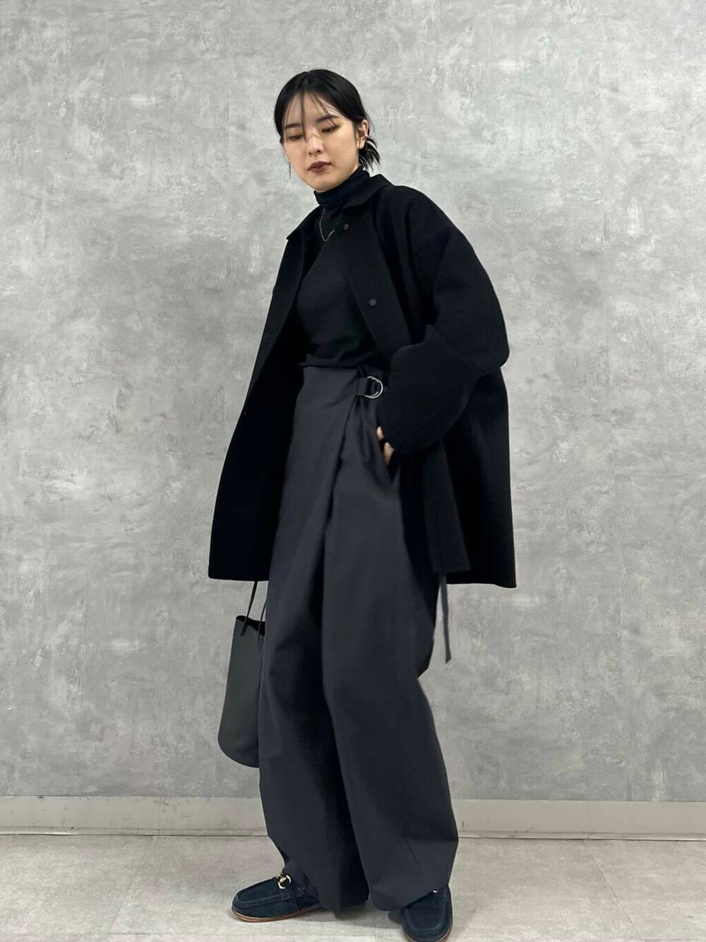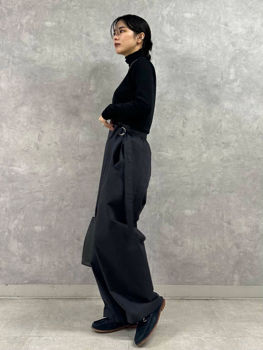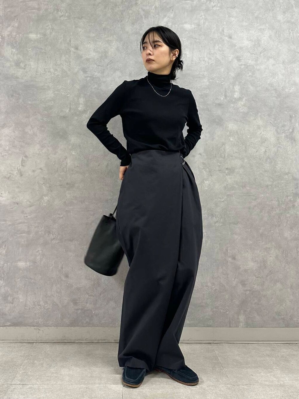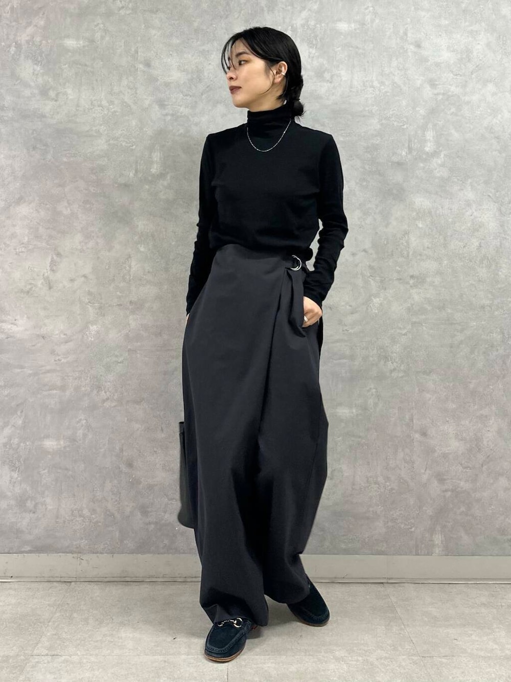 一枚で様になるラップパンツはバタバタと悩む朝に心強いですね…。シンプルに行きたいけどシンプル過ぎて手抜きっぽくなりたくないし…そんなジレンマから救ってくれる一枚です。