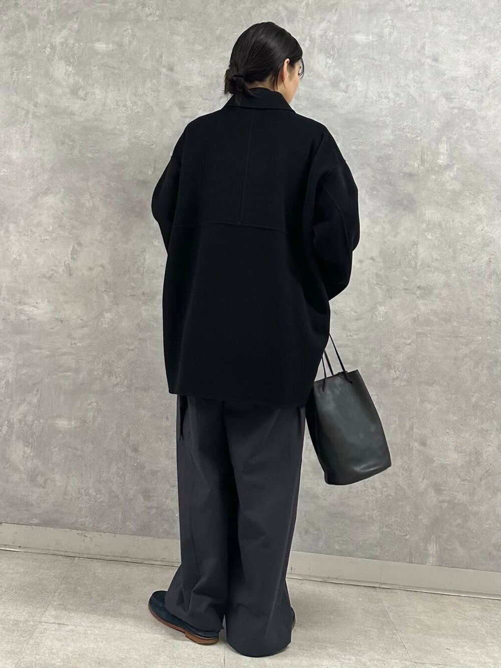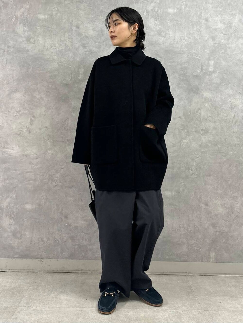 腰回りはゆったりとボディラインを拾わないシルエット。丈も長過ぎないため158cmでもぺたんこの靴でも綺麗に着れる丈感です。