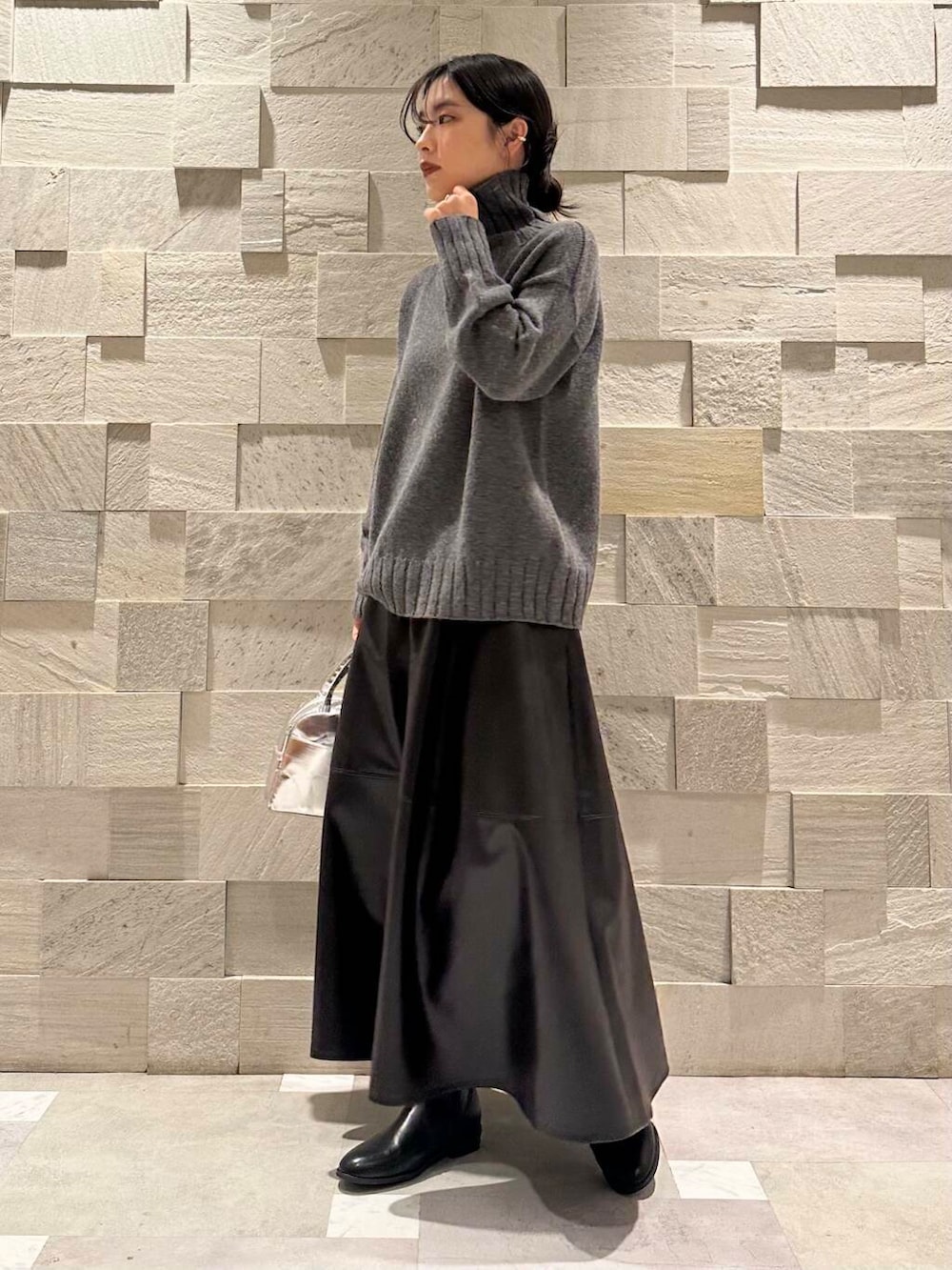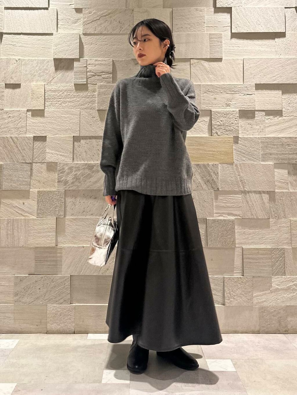今回はブラックのレザーにグレーカラーのニットでグラデーションコーデに。