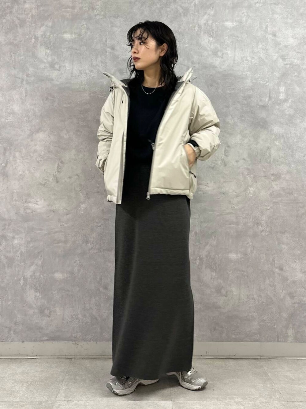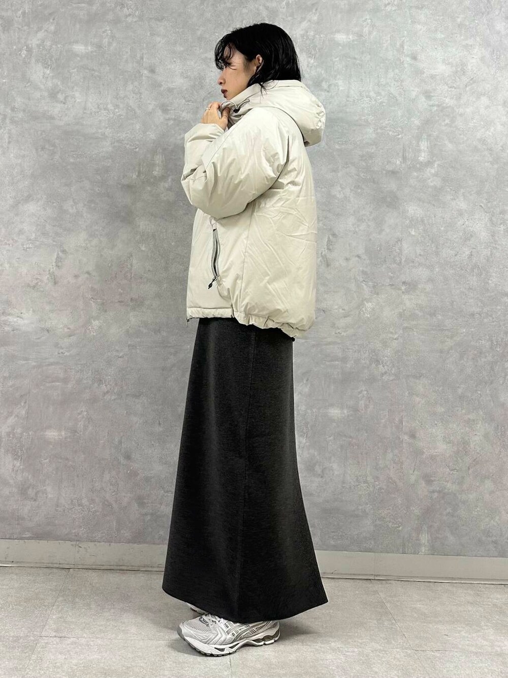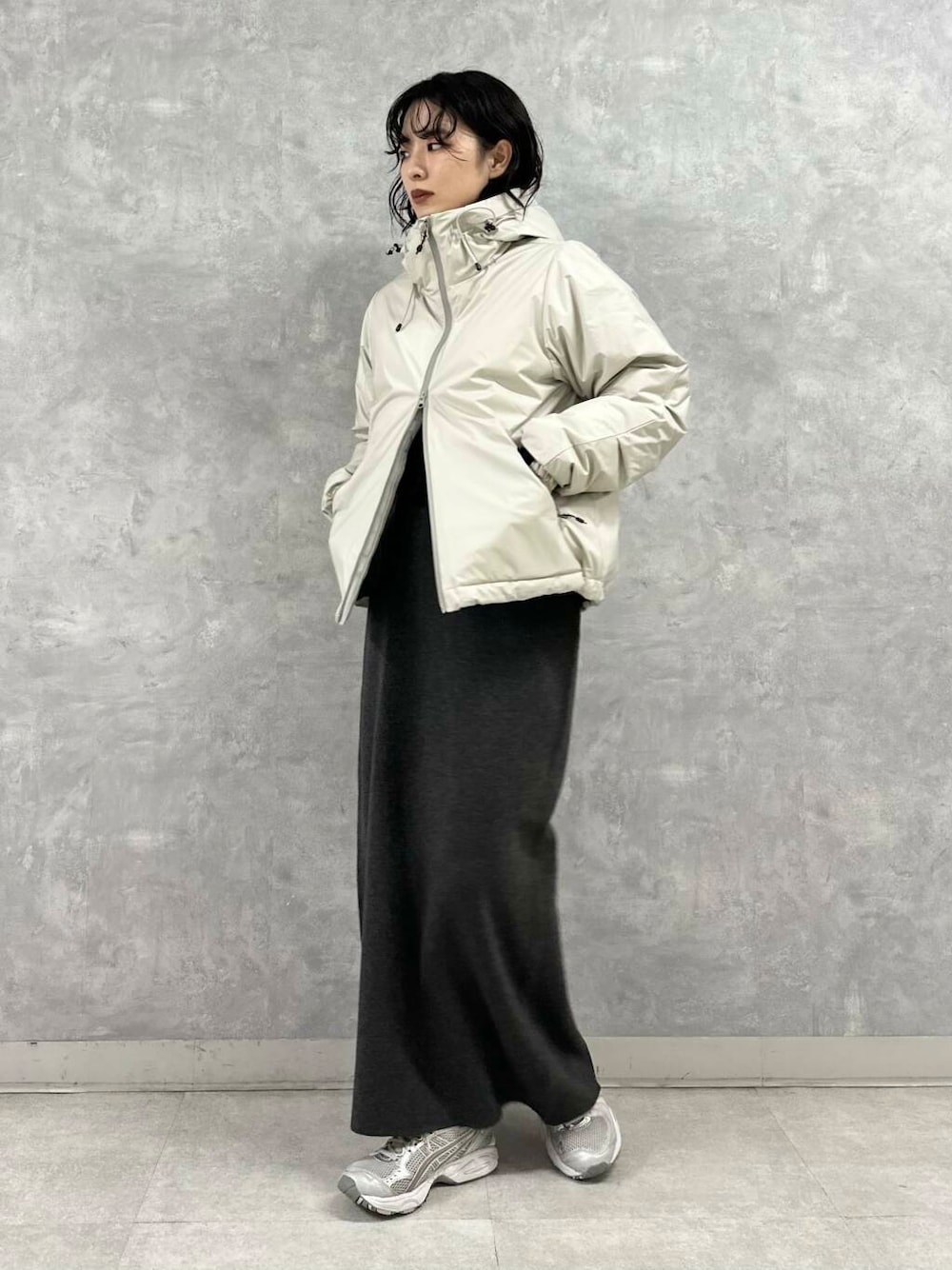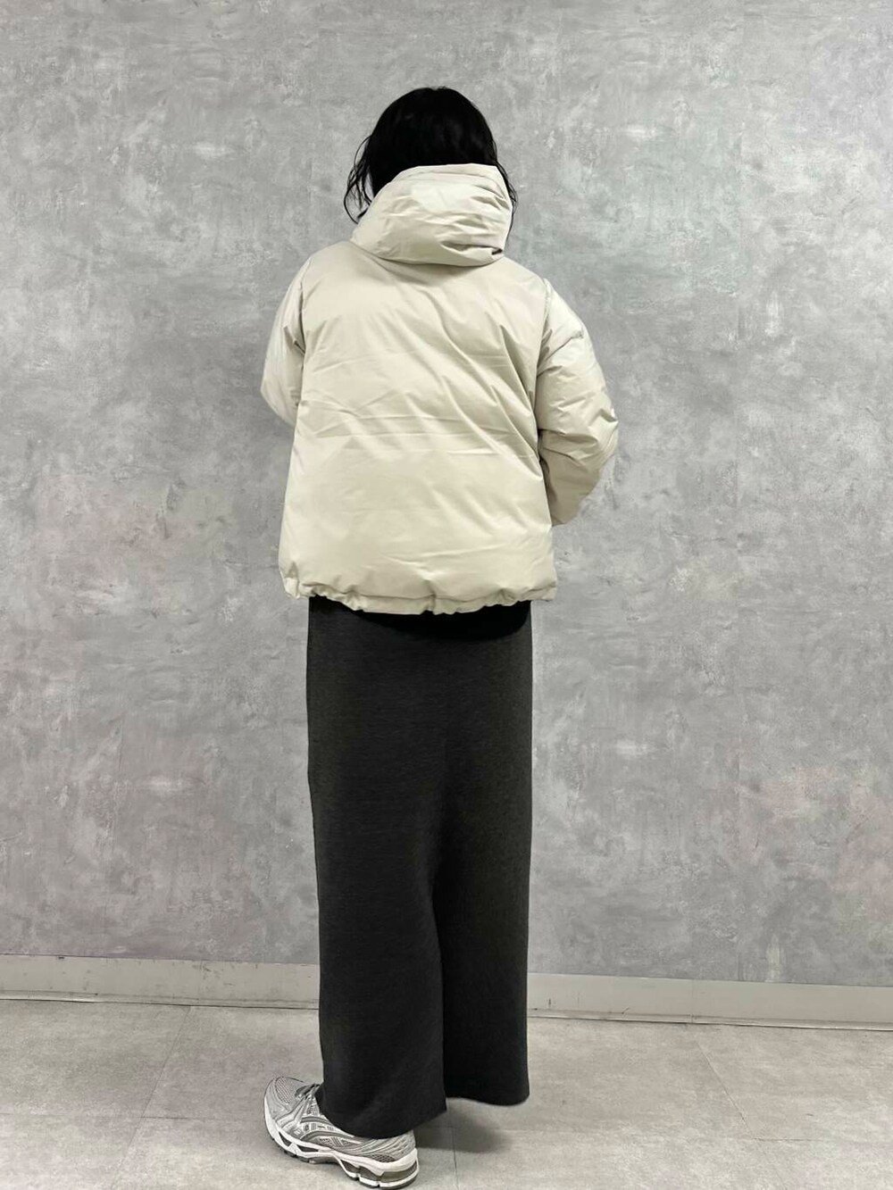 都会的なライトグレーのカラーがトレンド感をくれるダウンは、シームレスなデザインでダウン特有のムチッと感の出にくいデザインです。