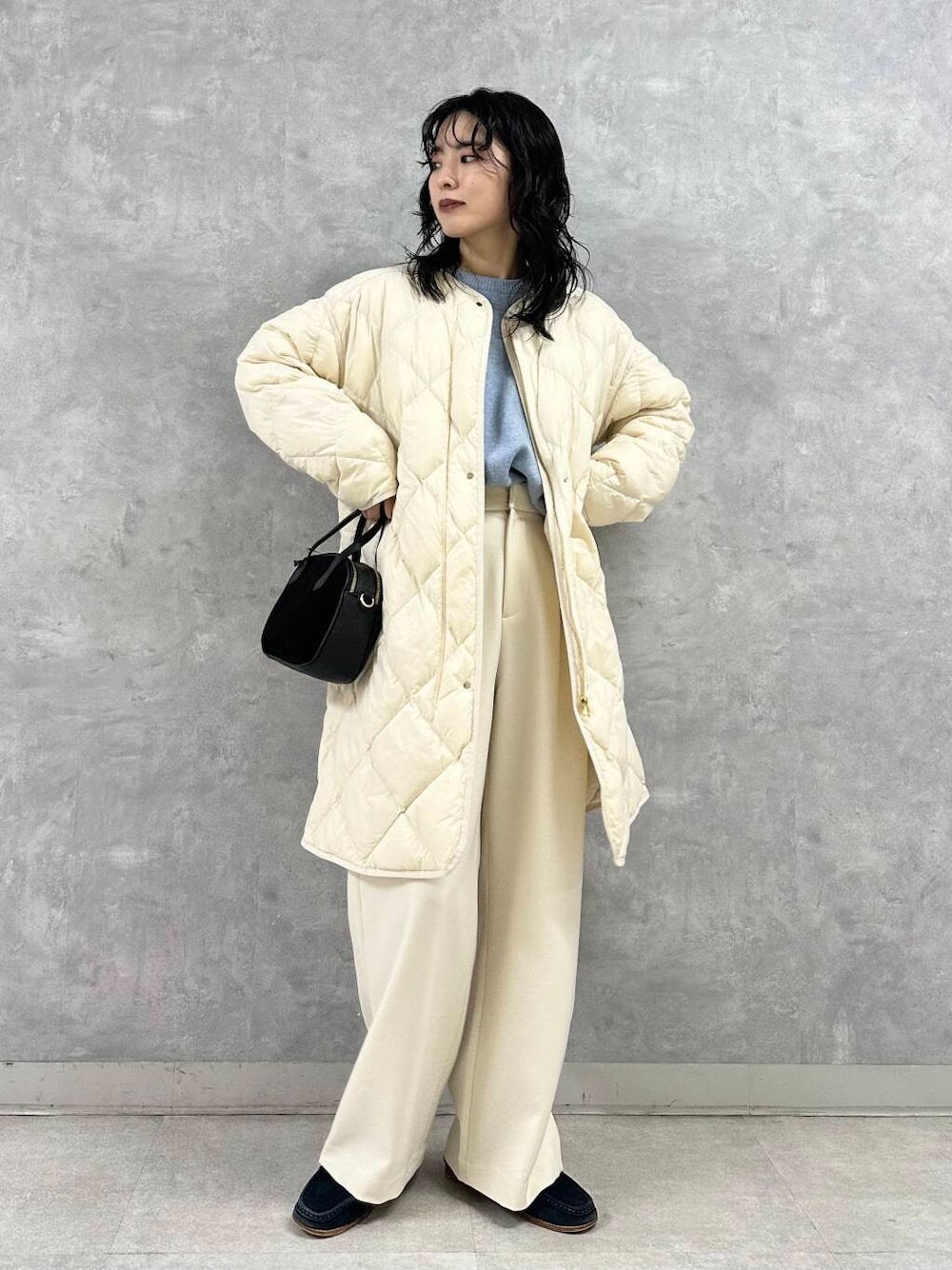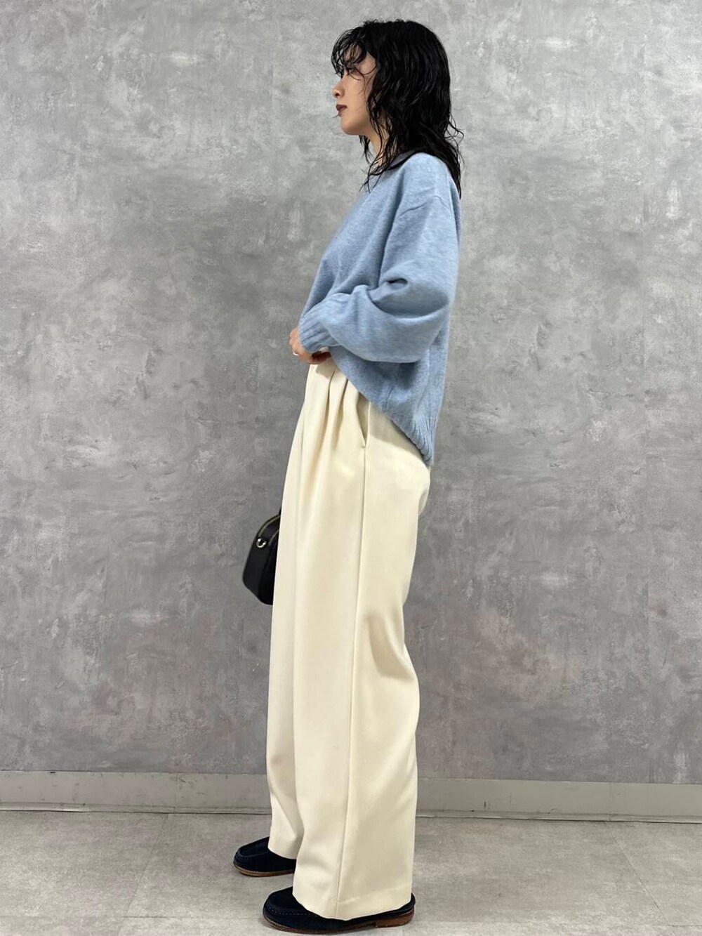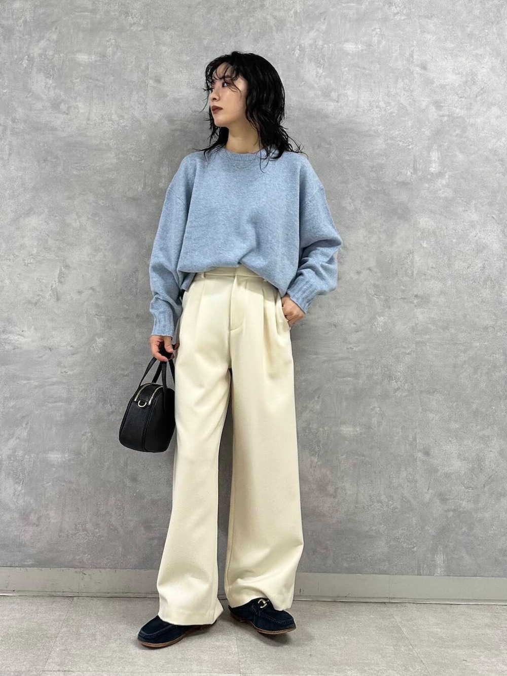 今回は冬のクリーンな色使いでオフィスカジュアルスタイルに。