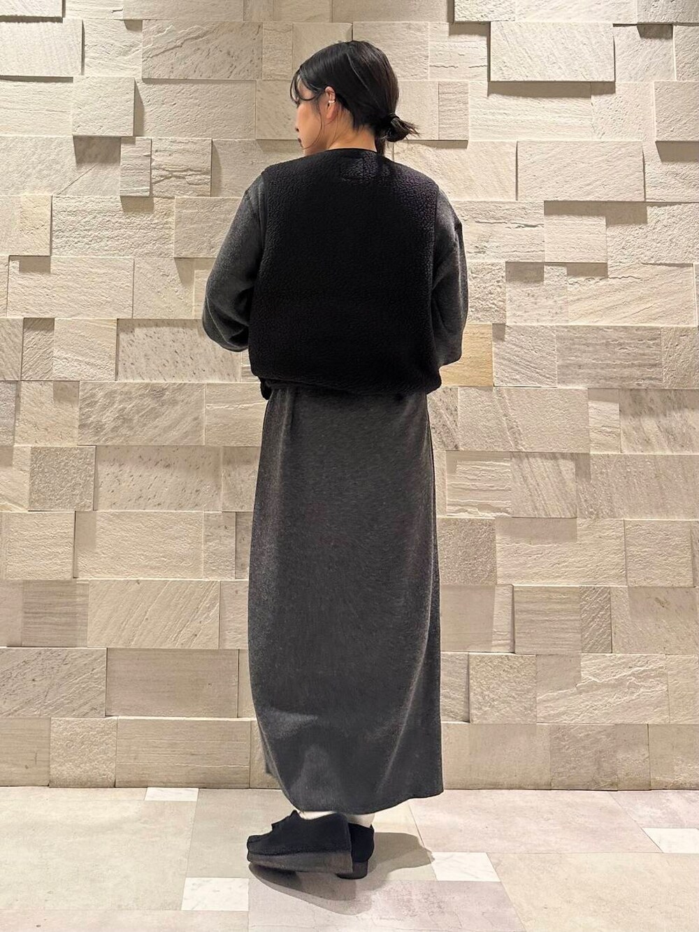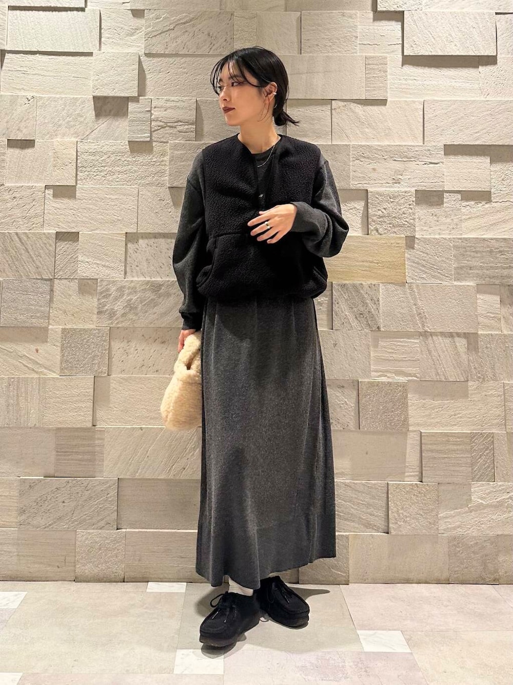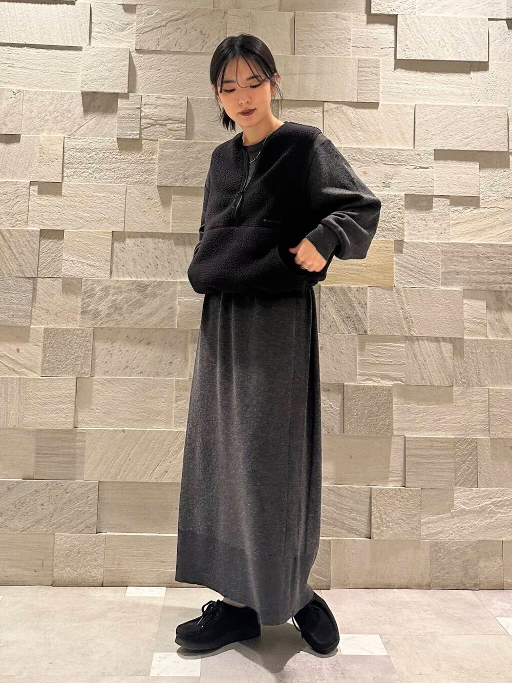 カットソーに重ねてのコーデはもちろん、今回はシンプルなニットワンピースに合わせのコージースタイルに。