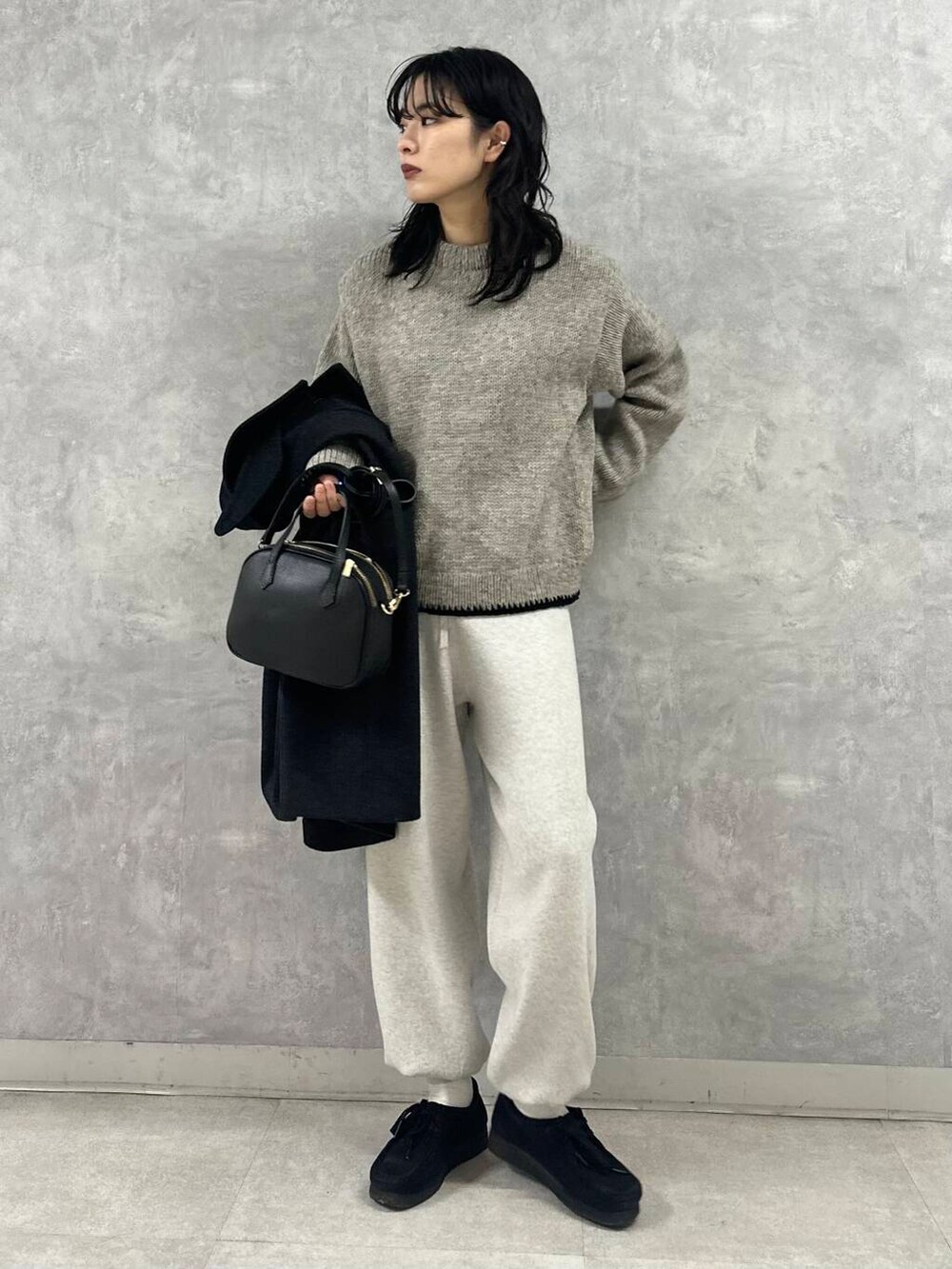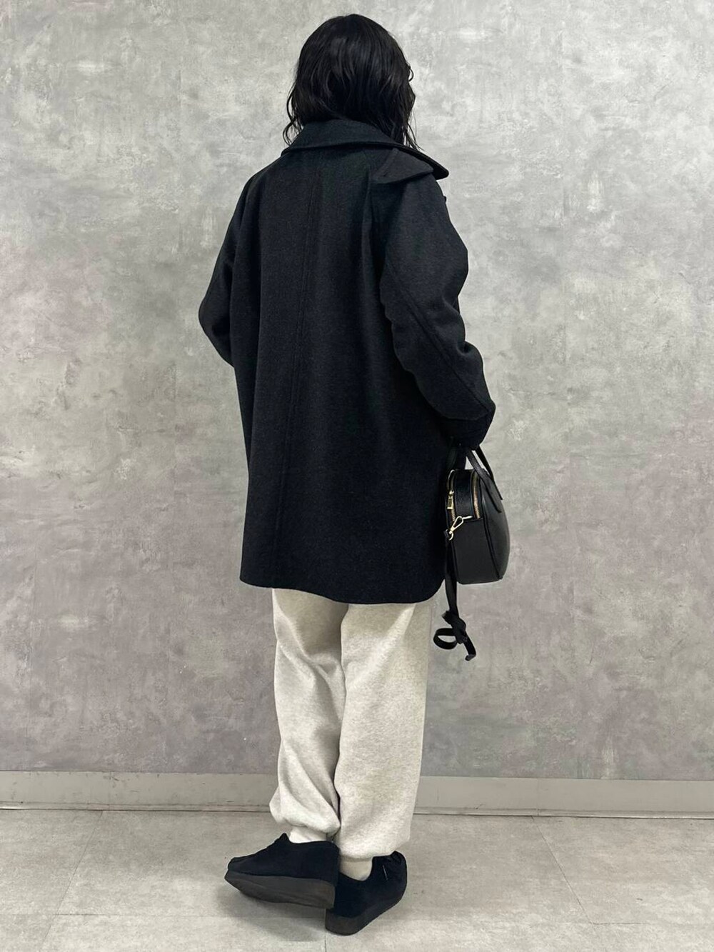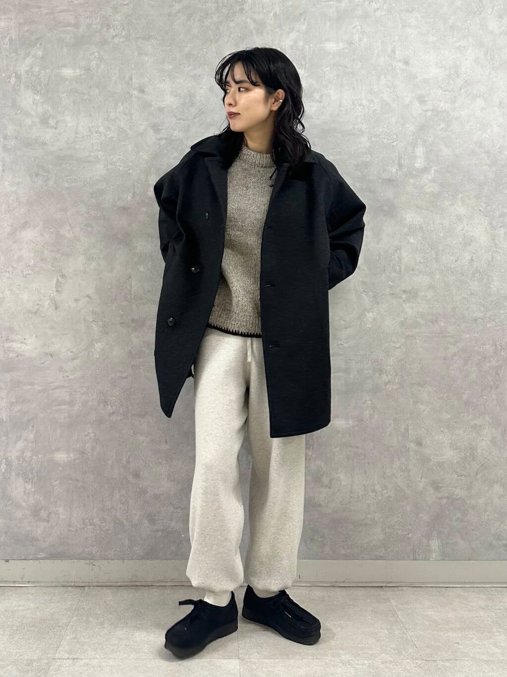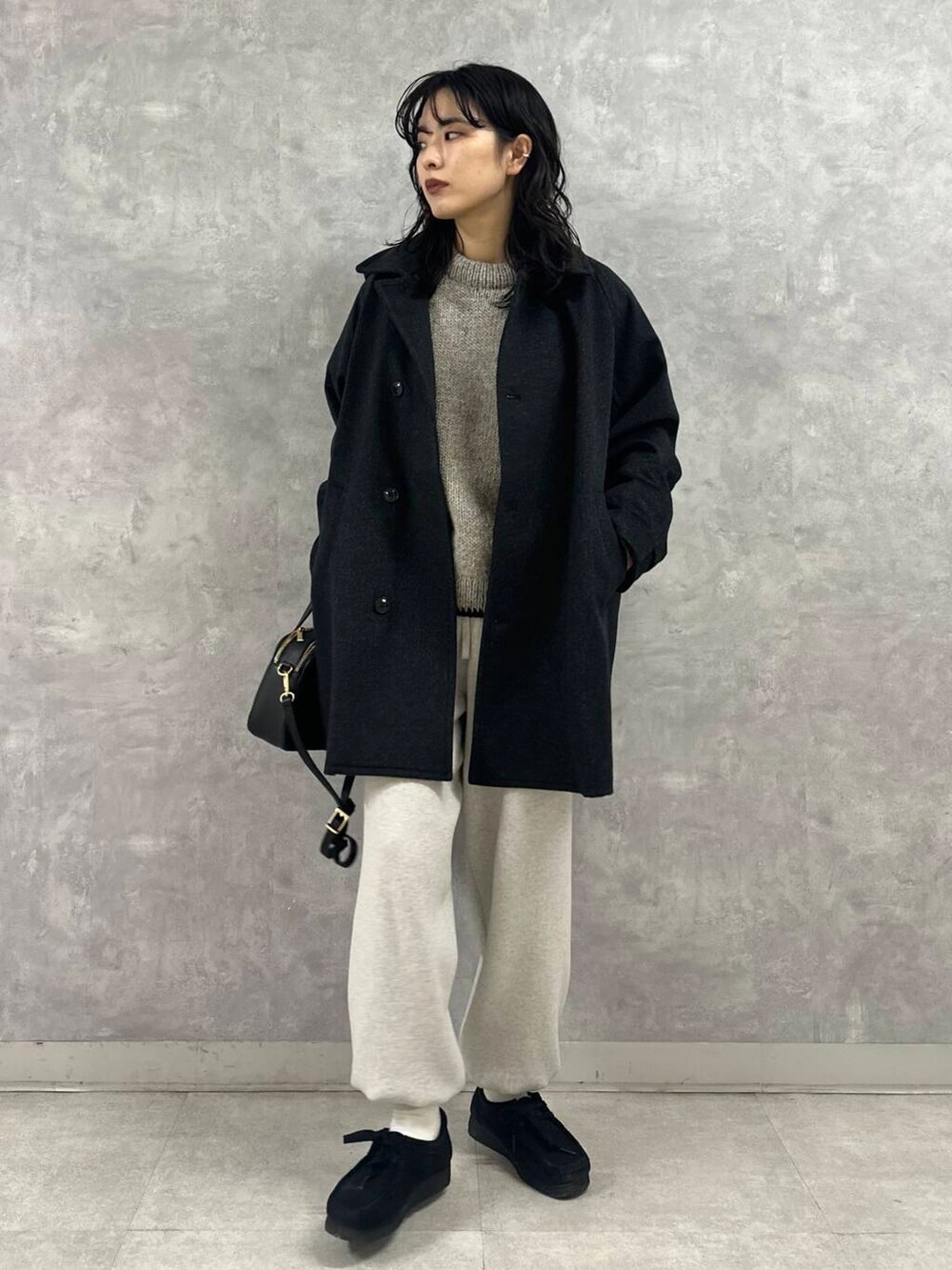 今回はボーイズライクにスウェットパンツとPコートでのコーディネートに。