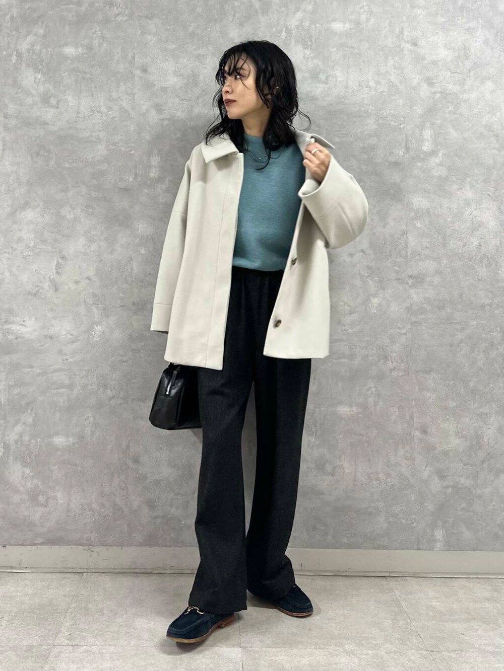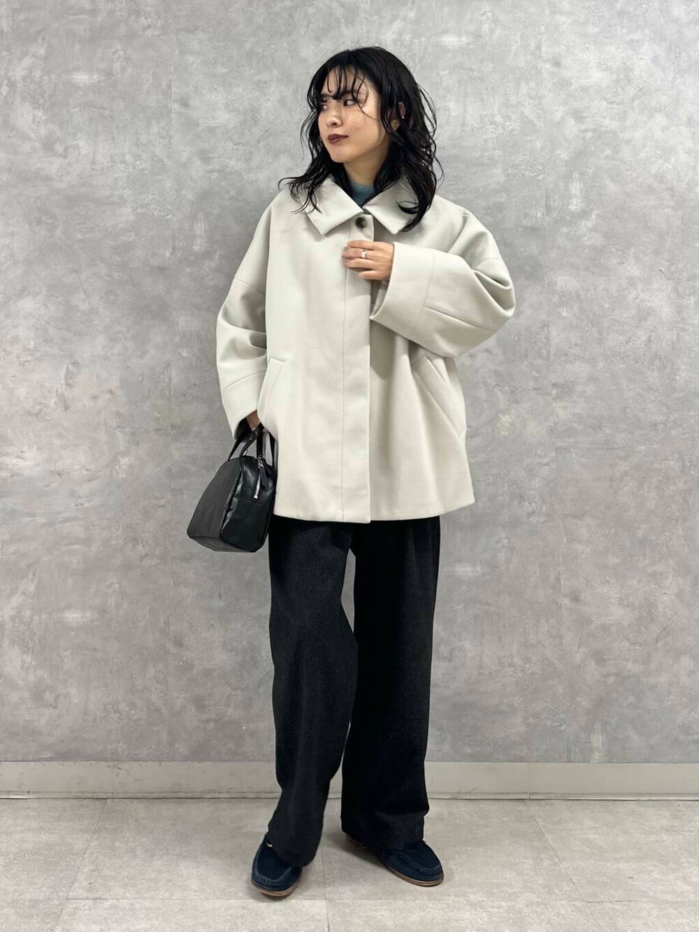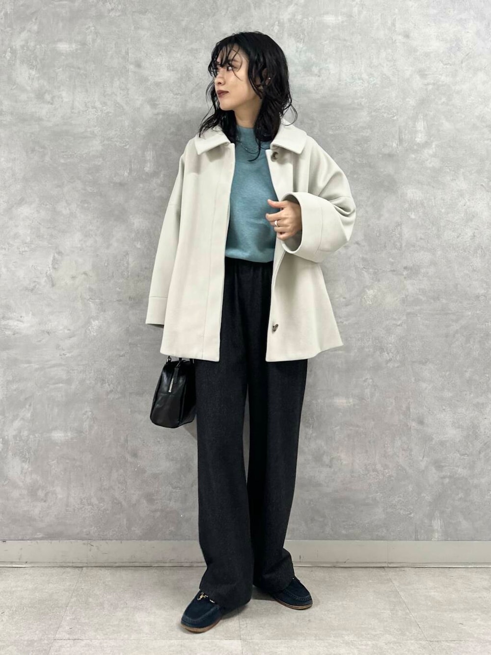 コートは丈も長過ぎないのでワイドパンツとの組み合わせにもおすすめです。