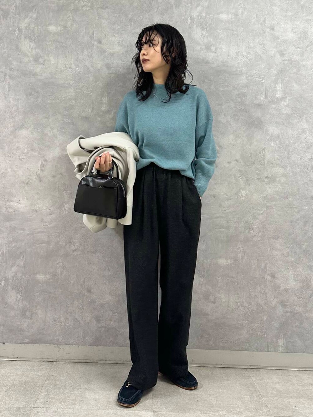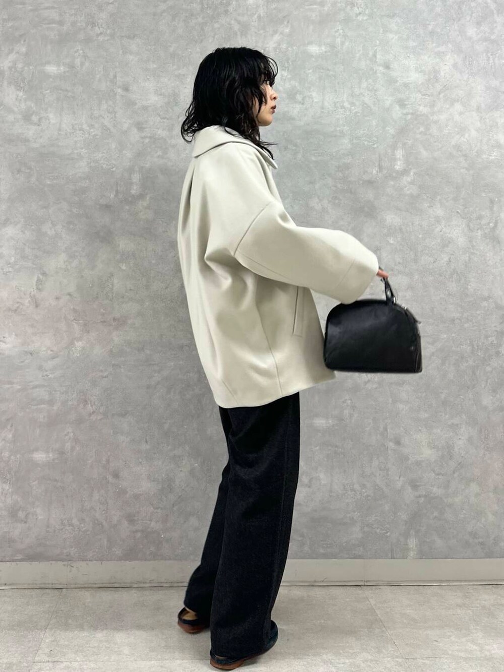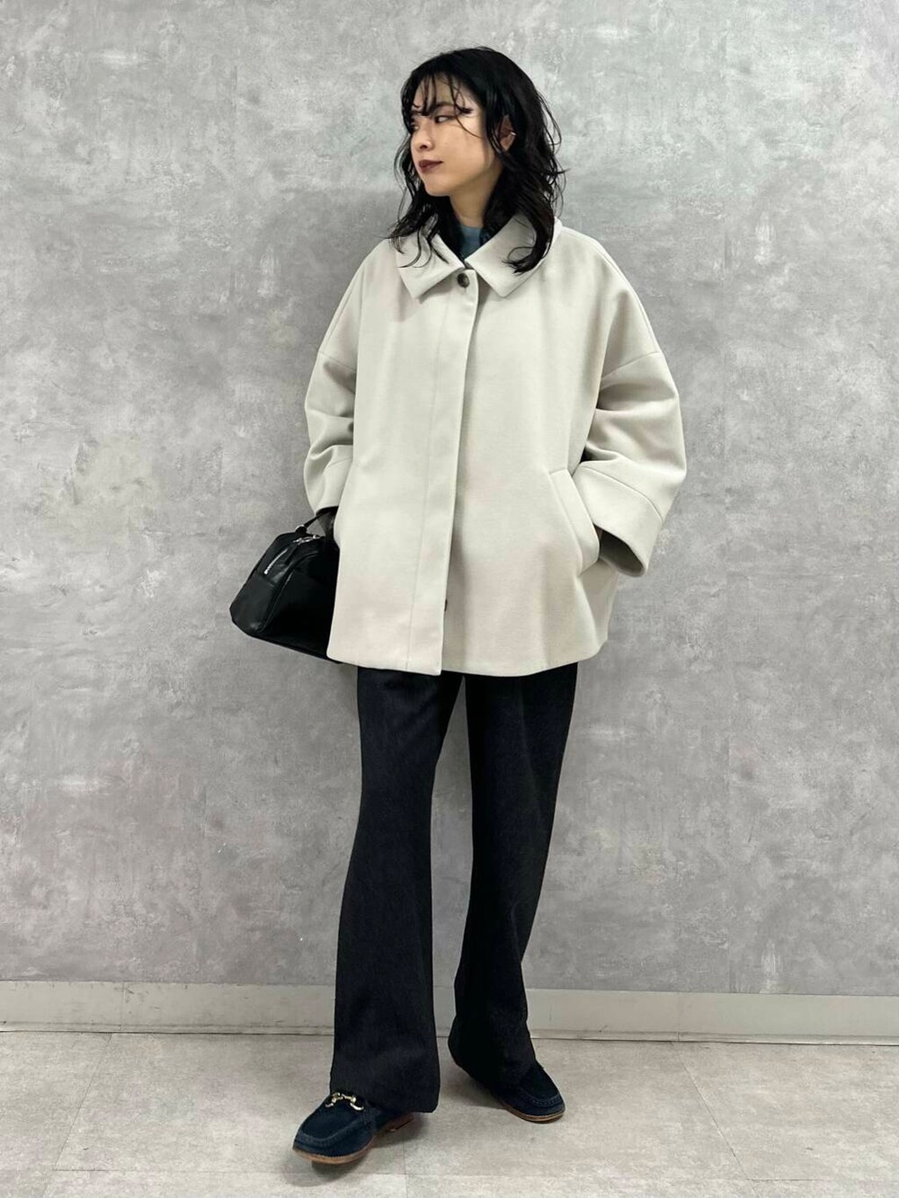コートは丈も長過ぎないのでワイドパンツとの組み合わせにもおすすめです。
