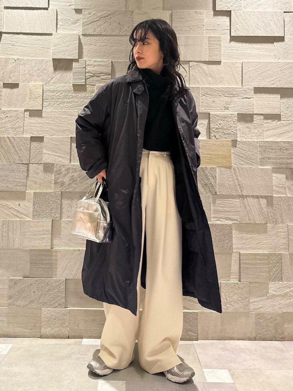 今回はステンカラーコートベースに綺麗めスタイルに。