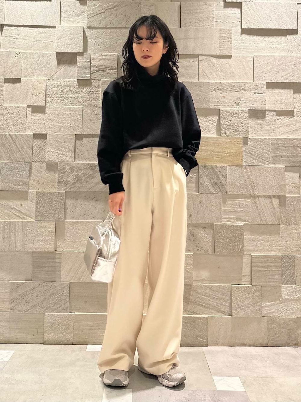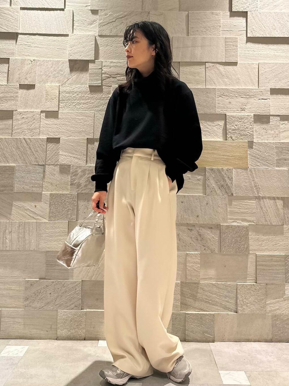 落ち感のあるトラウザーとニットで合わせることでカジュアルダウンしすぎずに合わせることができます。