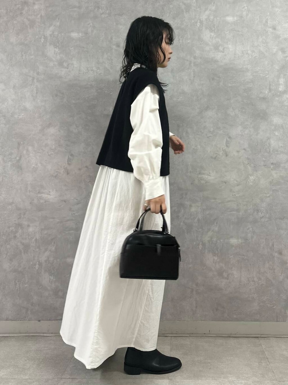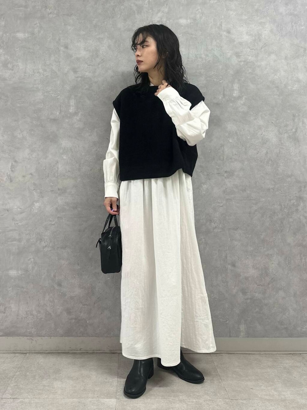 丈はかぐれのなかでも短めの作りとなっているため、ワイドパンツ合わせや、今回のようなロングワンピーススタイルにもおすすめです。