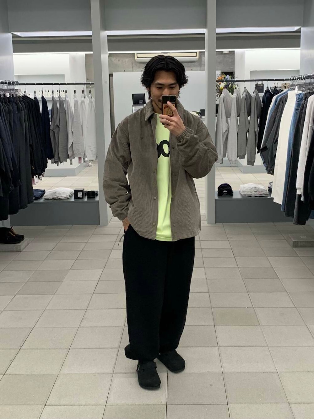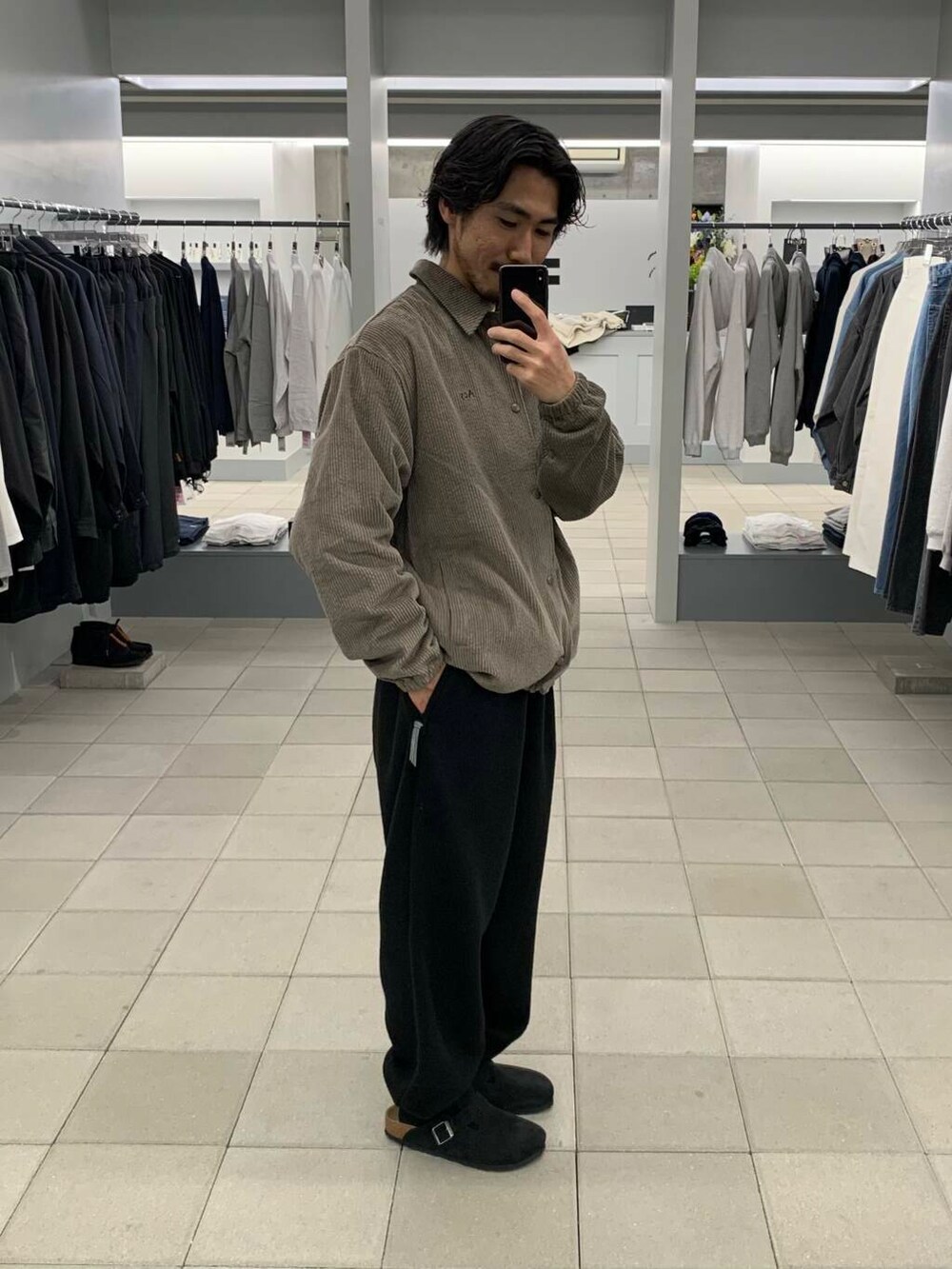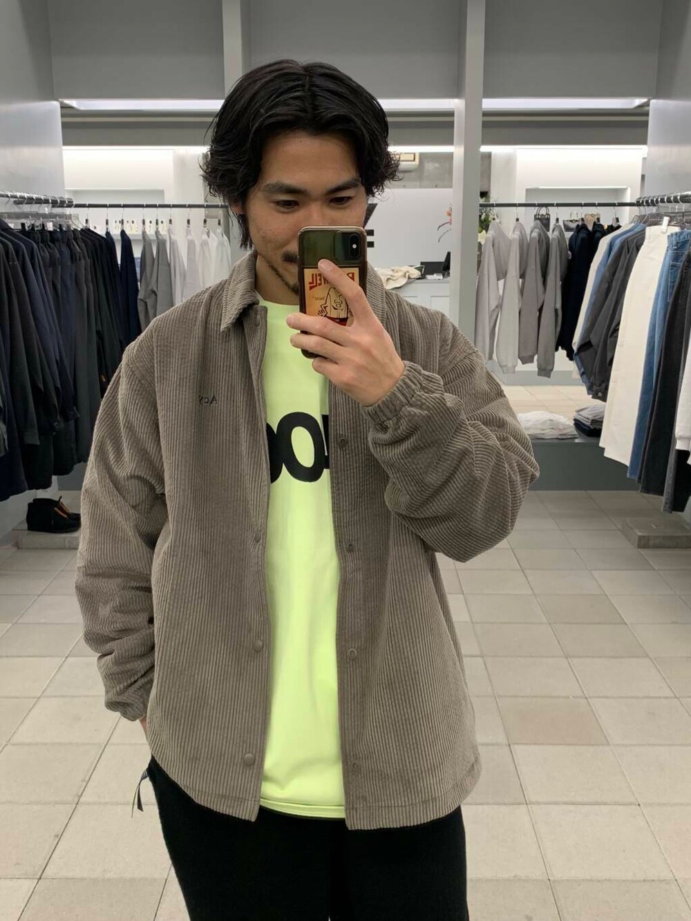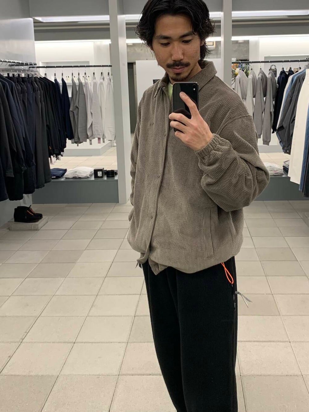 acyコーデュロイジャケットは裾のドローコードをギュッと縛って、オレンジのコードを垂らすのがオススメです✨
