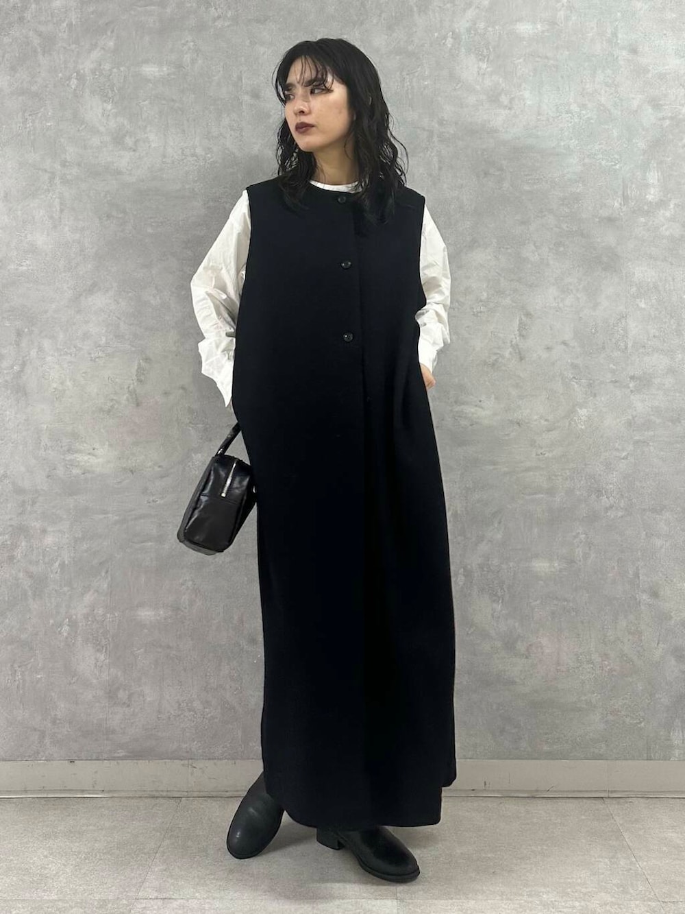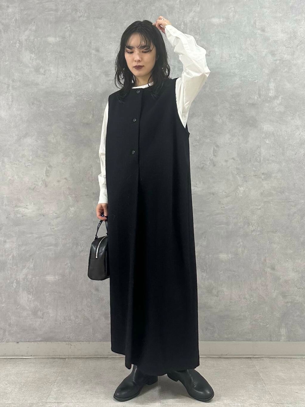 シックさのあるウールジャンパースカート。丈は158cmでぺたんこのシューズでも大丈夫な丈感でした。