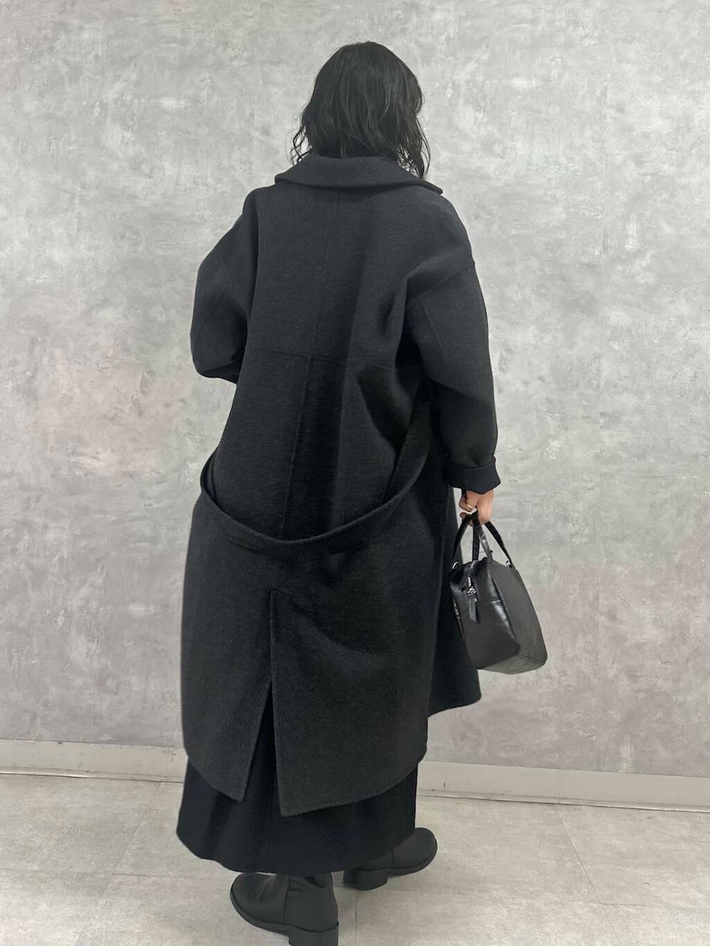 広がり過ぎないストレートシルエットですが、フロントにタックも入っているため、動きやすく、座った時に圧迫感がないのも嬉しいところきこ。