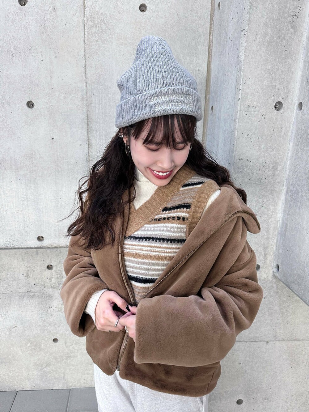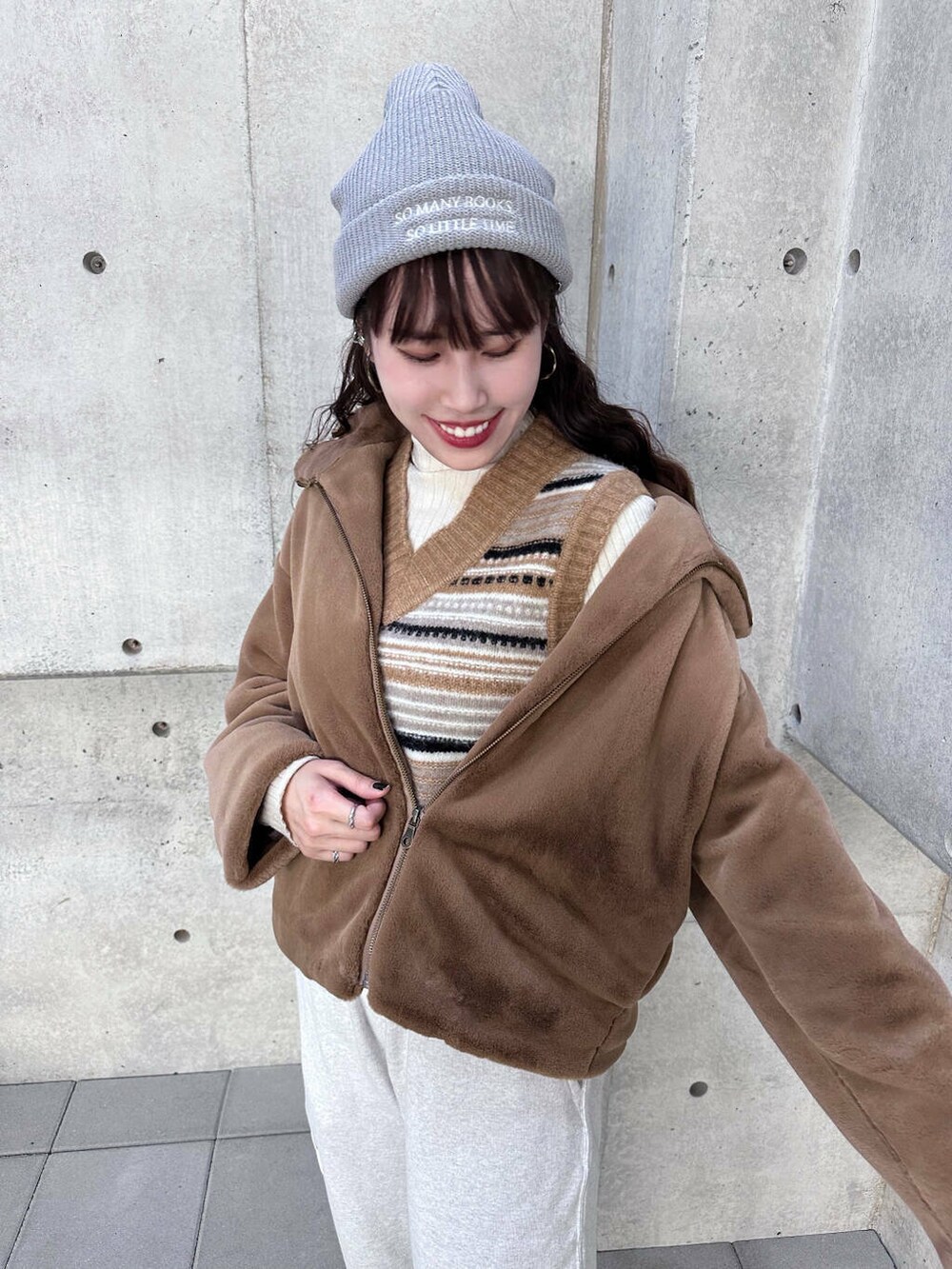 トップスにはGANNIの可愛いアーガイル柄ベストと、極上に柔らかくて着心地の良いアウターを合わせて、全体は暖かくてカジュアル可愛く仕上げました🧸