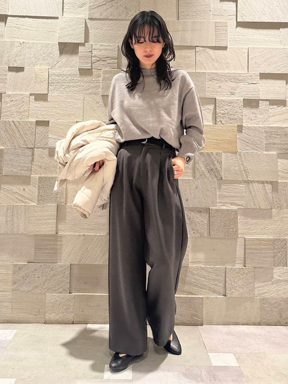 今回はスラックスもチャコールグレー。ダウンもアイスグレーの組み合わせでとことん品よく。