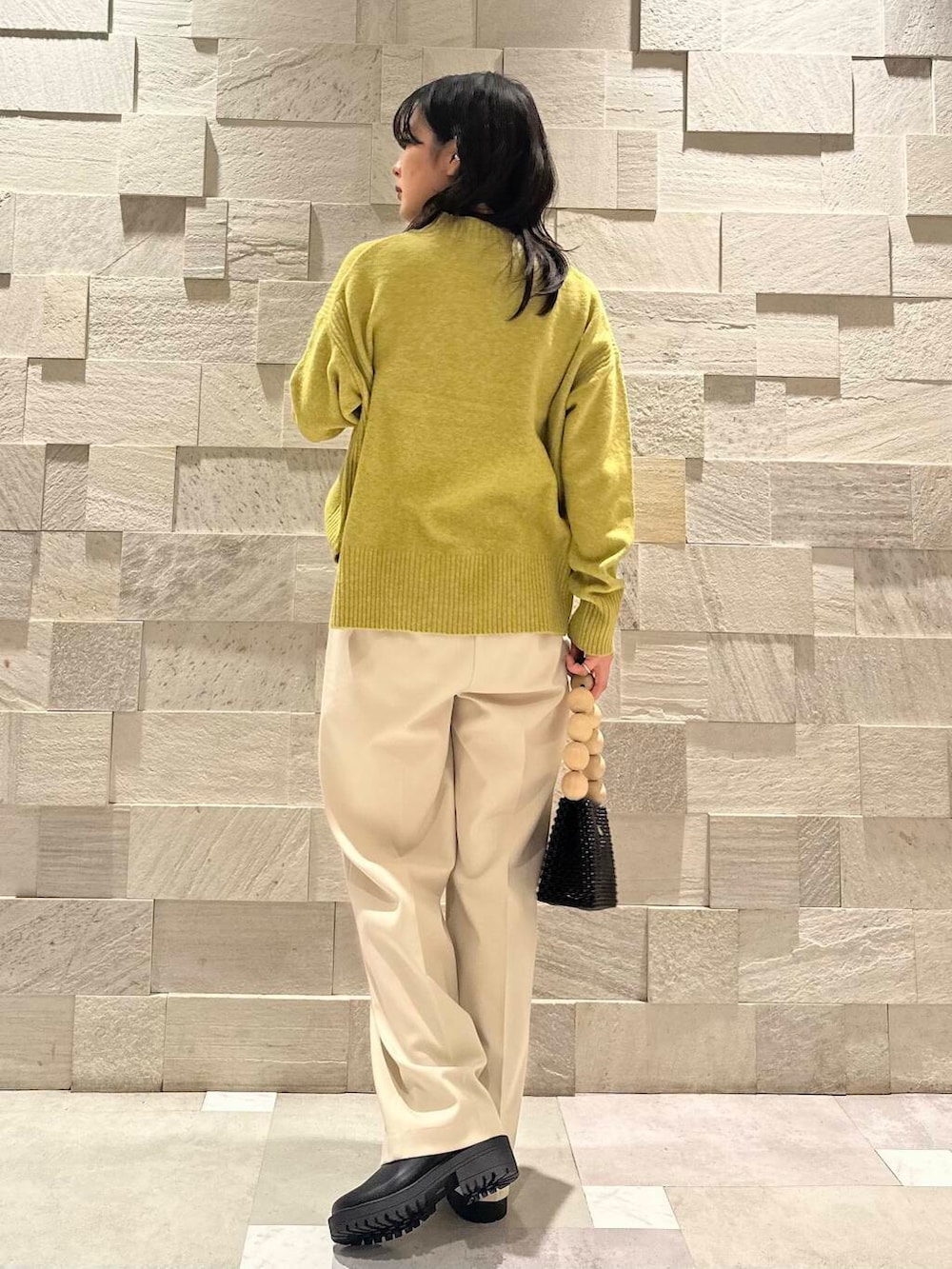 ウォーム感のある発色なのでカラーニットながらあまり華美な印象にはならず、意外と馴染みのいい一枚です。