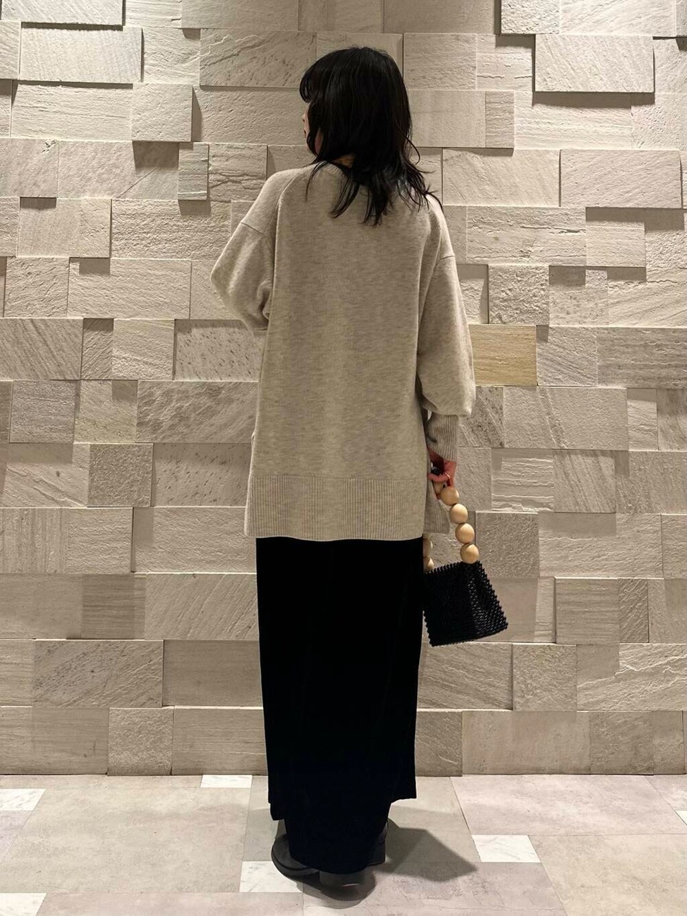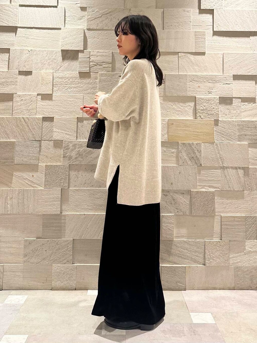 丈はおしりすっぽり丈なので、今回はストレートスカートを合わせてのコージースタイルに。