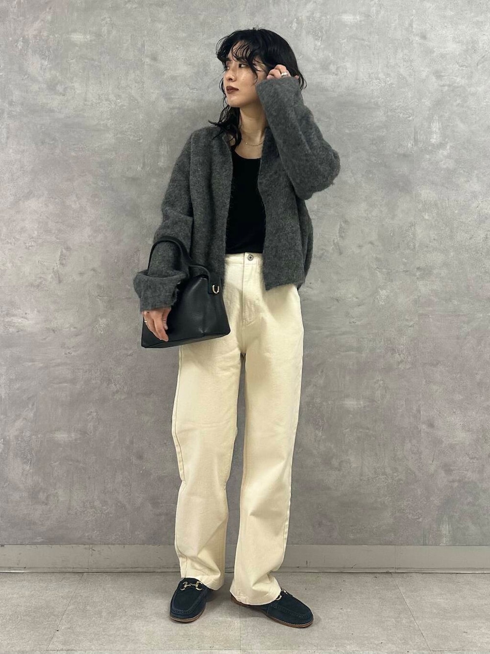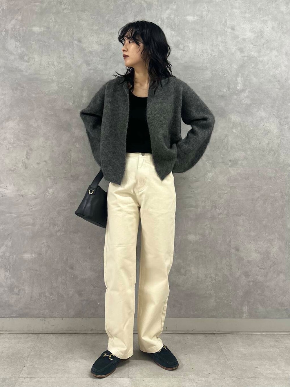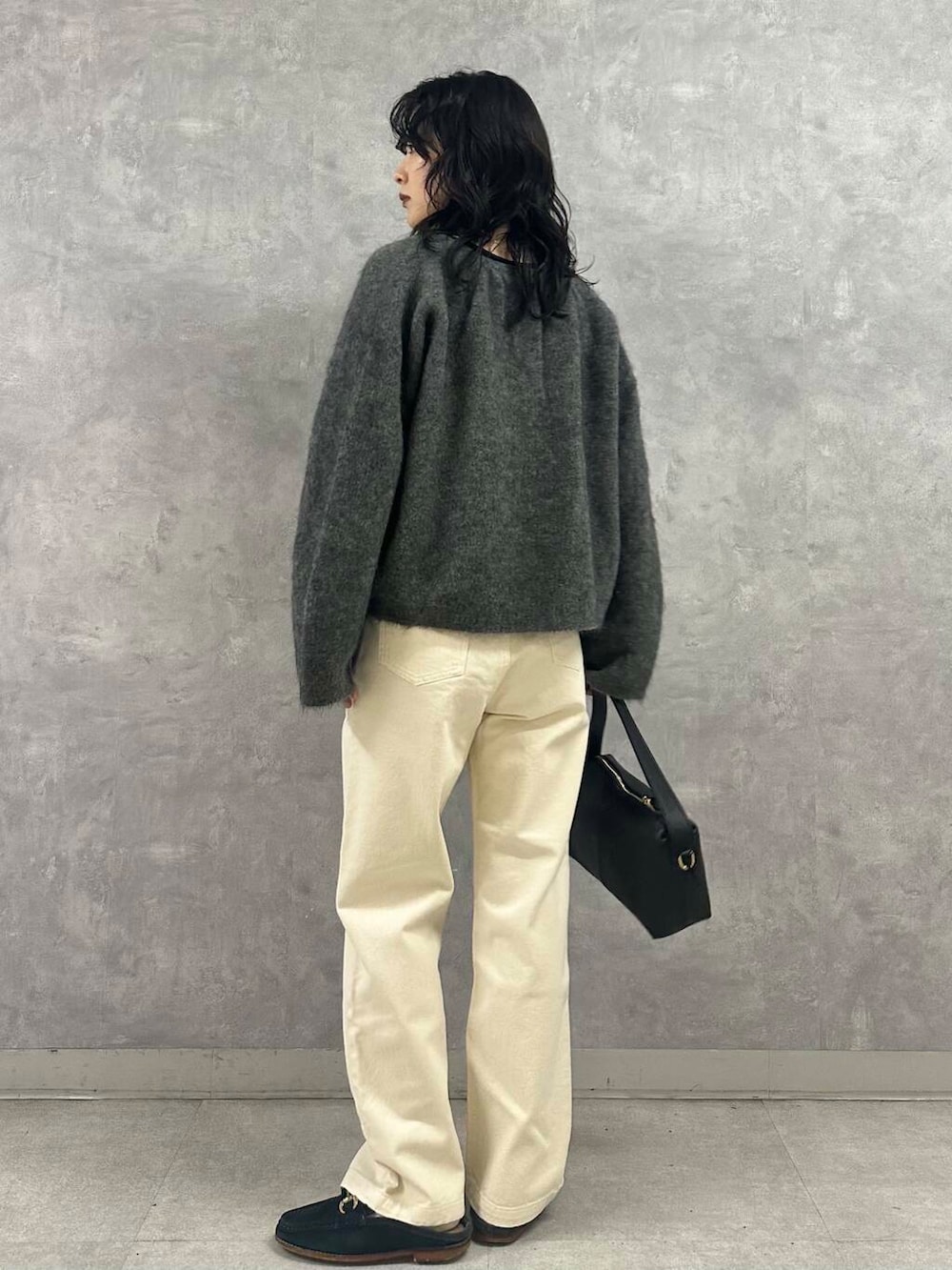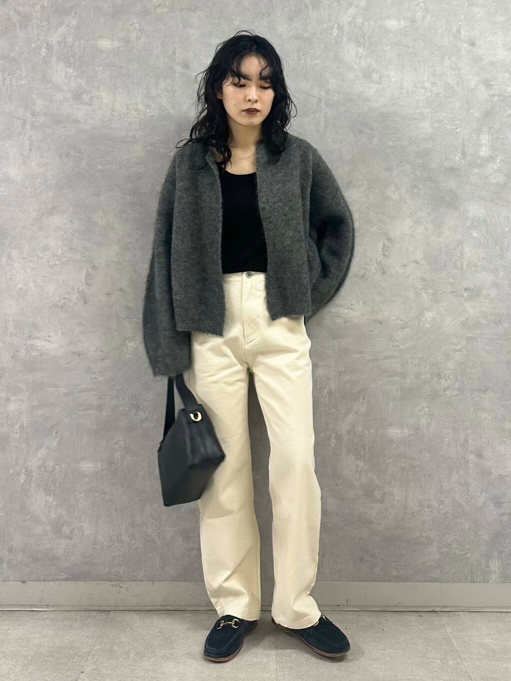 抜け感のあるuniflのカーディガンは着心地も軽く、重ね着する時期にもストレスフリーの一枚です。丈は短めですが、身幅がゆったりとしているのでボトムのボリューム問わず合わせやすいデザインです。