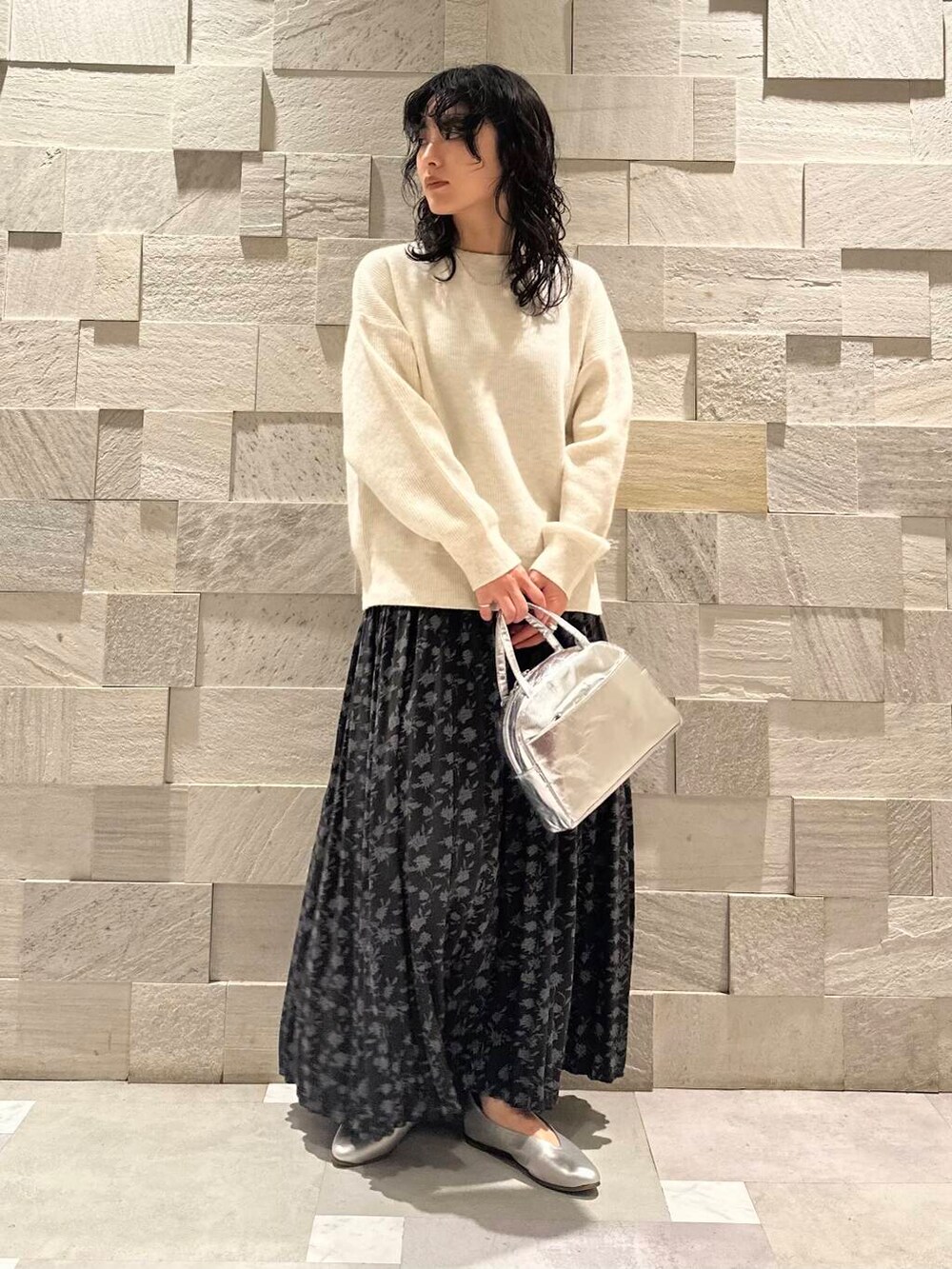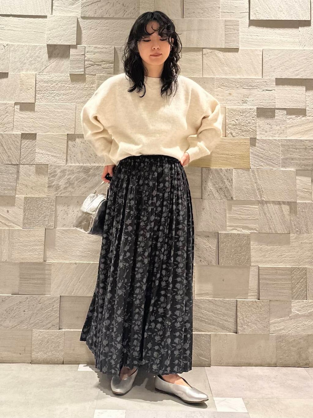 細かいプリーツデザインが腰回りのシルエットもすっきりと見せてくれるスカートは、膨らみ過ぎないシルエットなので、ヒップラインも気にならず、みじかめのトップスとの組み合わせにもおすすめです。