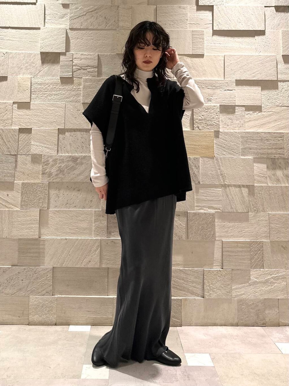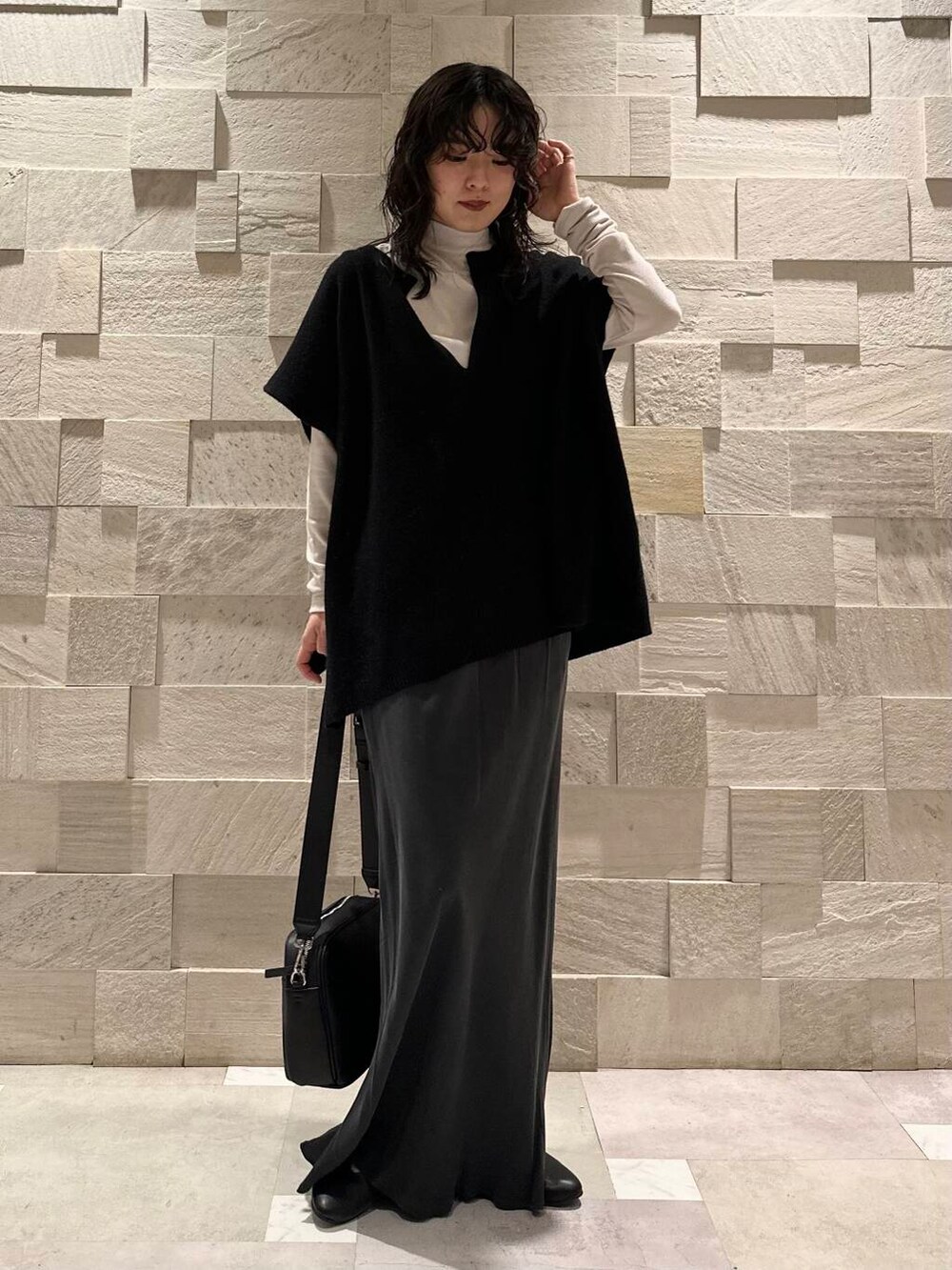 生地が柔らかいので、ドロップショルダーのベストでもアウターを合わせた時に袖周りがごわつかないのも嬉しいところ。