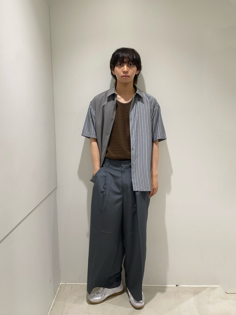 ストライプのシャツは一枚でレイヤードしなくても決まるアイテムになってます。