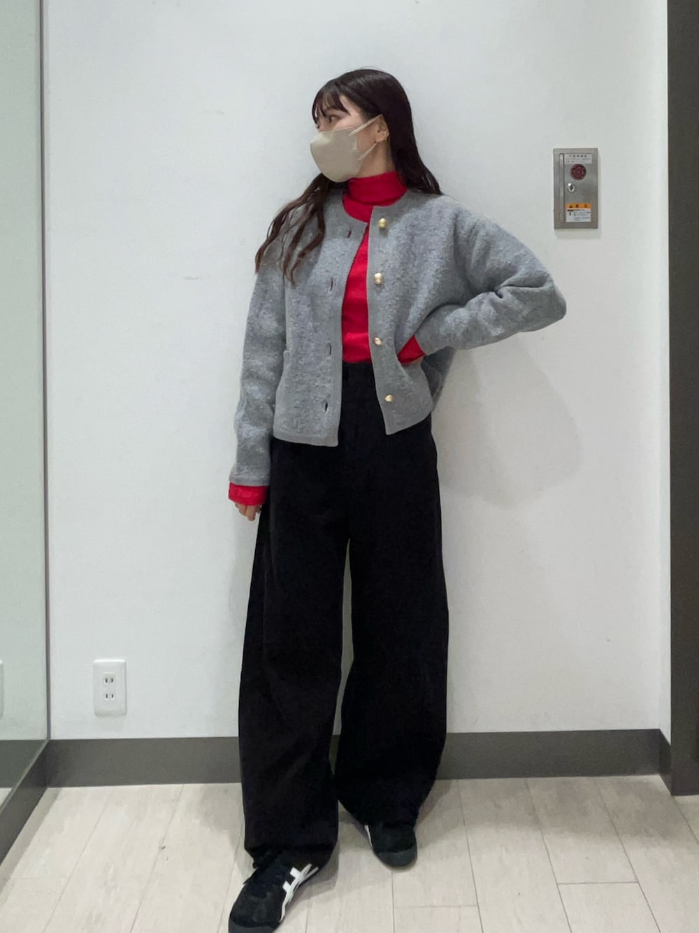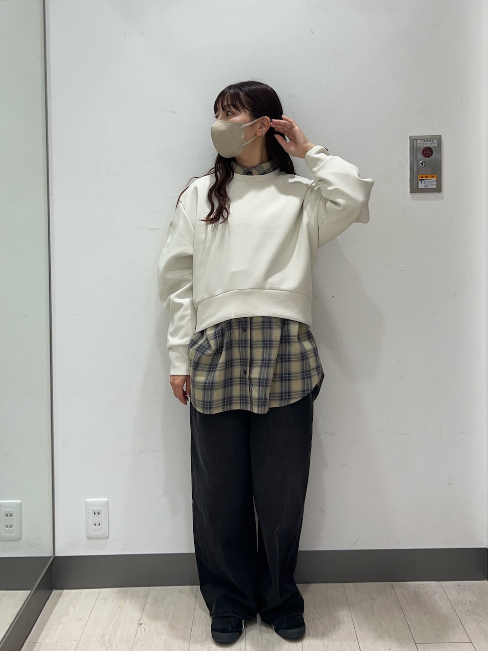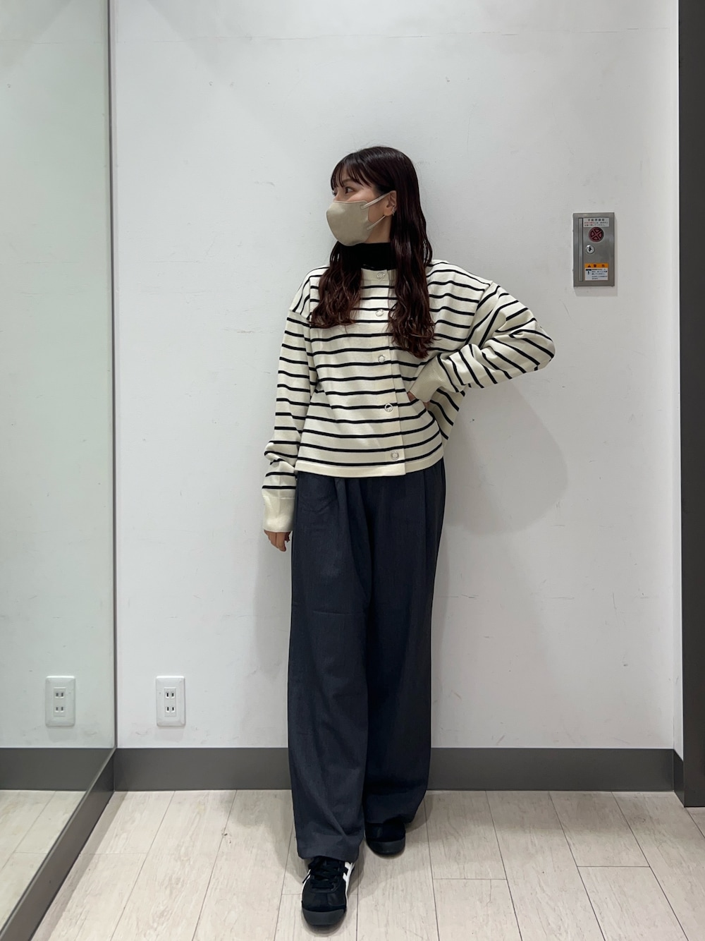 パンツはワイドなつくりですがスッキリとした印象で着用できます!ウエストがゴムになっていたり柔らかいはき心地でオススメです🧡