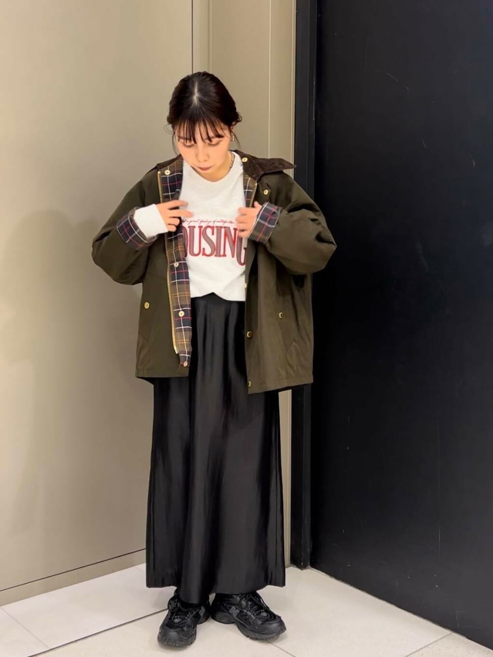 袖口チェックが可愛いこちらのお色味を着てみました🤍