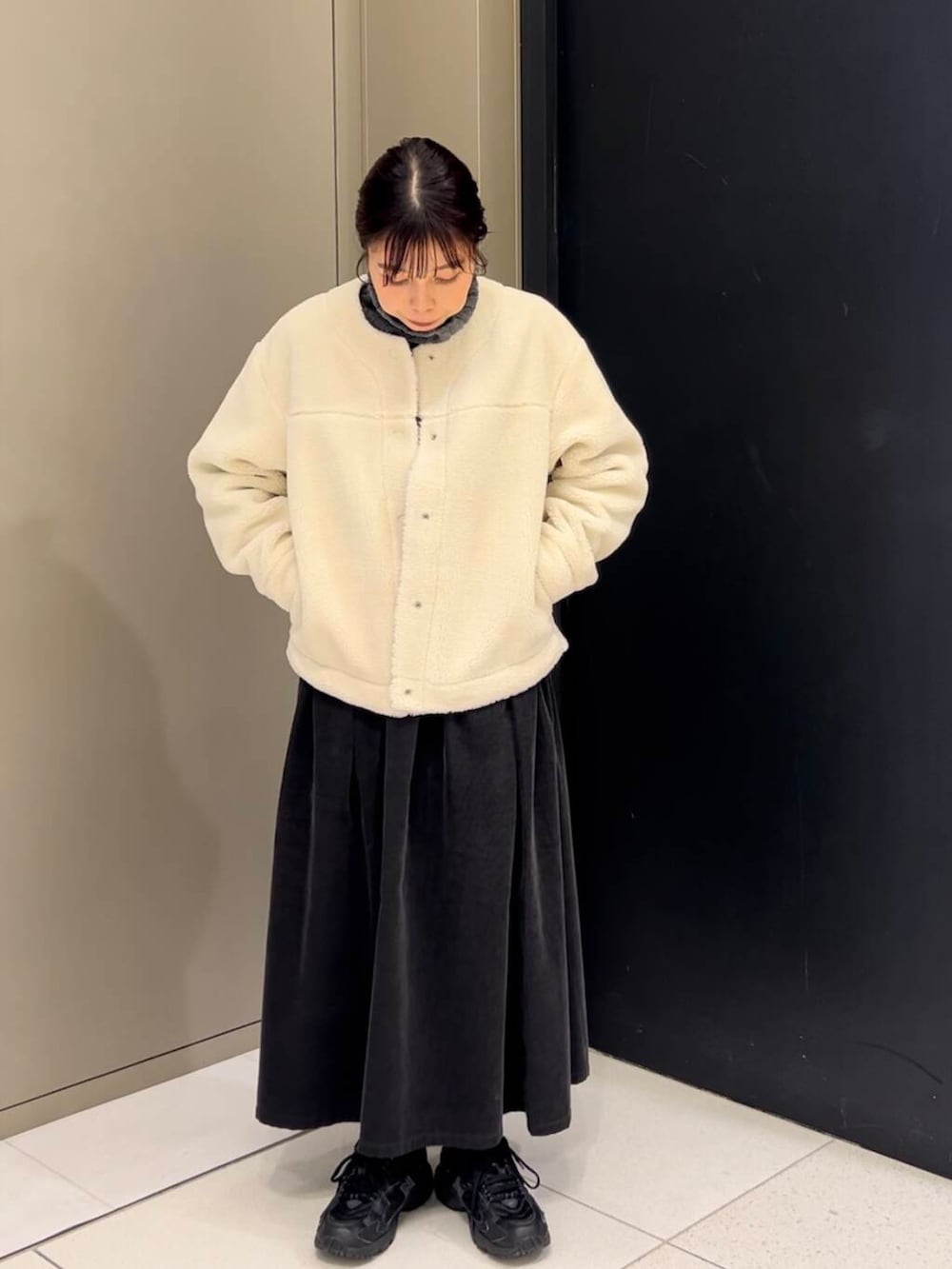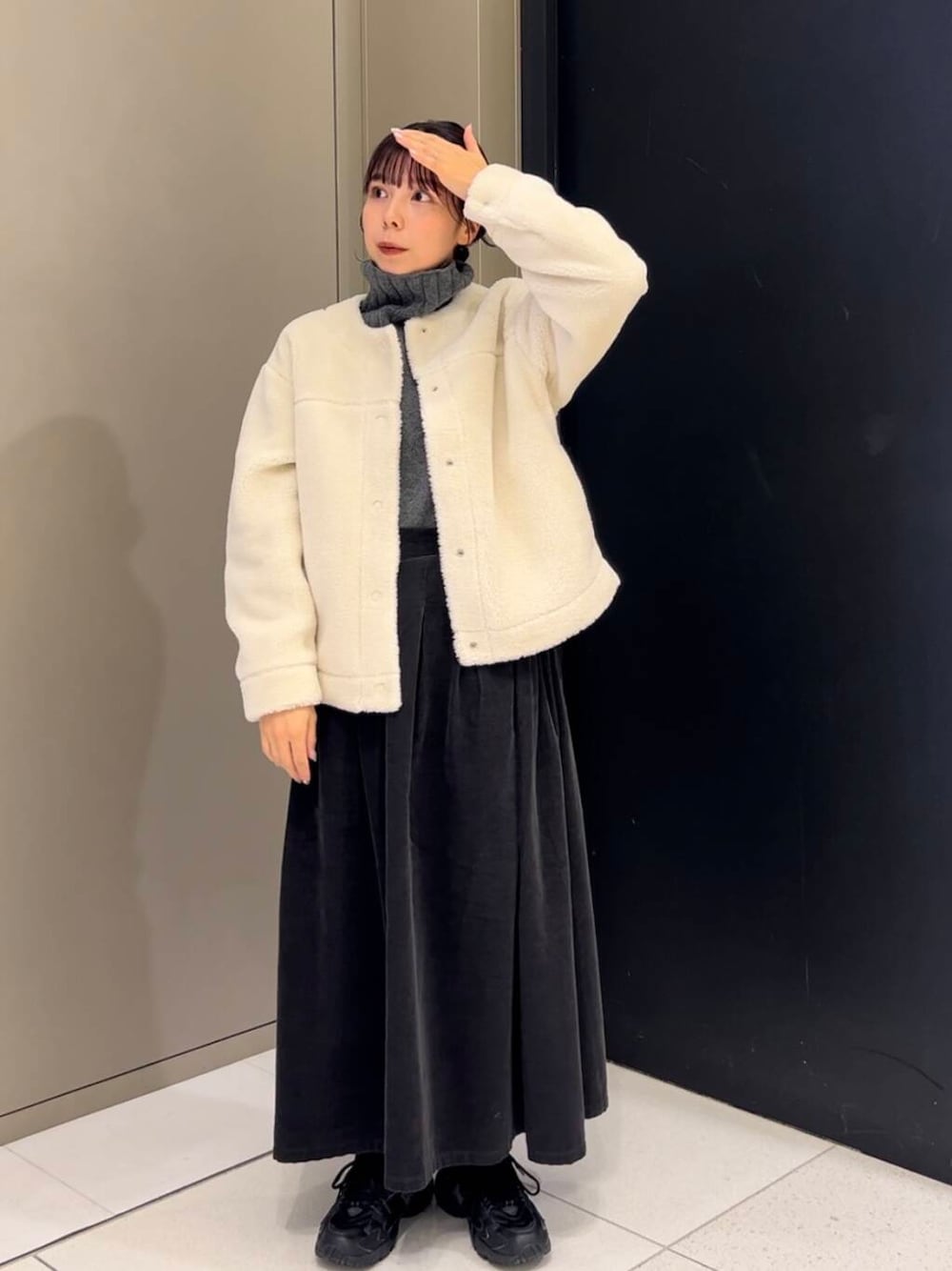 簡単にあったかくて、もこもこ可愛いコーデができるのでノーカラーのアウターは一枚持っておくと楽ちんです🎶