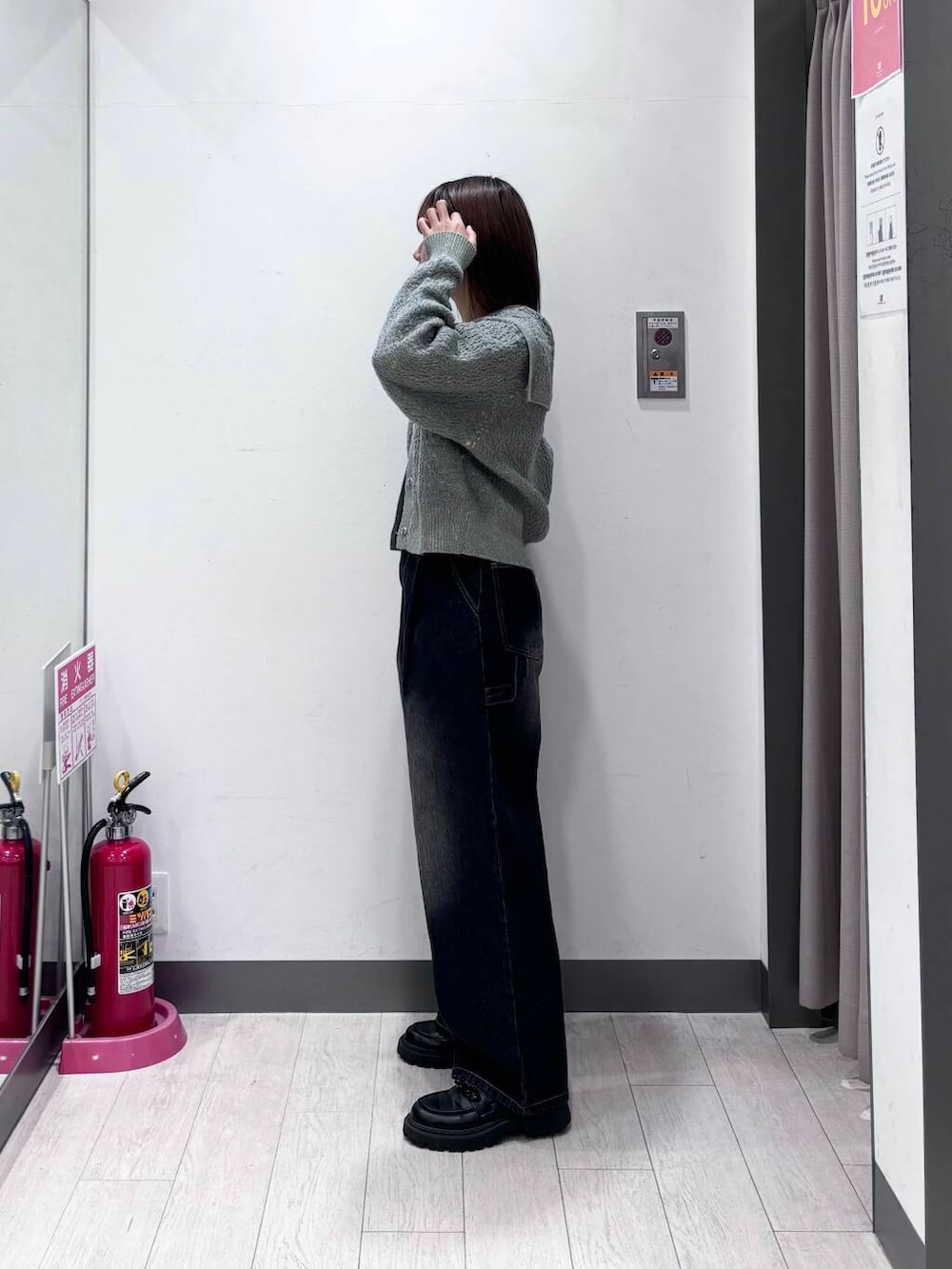 短丈で肉厚なニットなので日中でしたら一枚でも十分ですね!