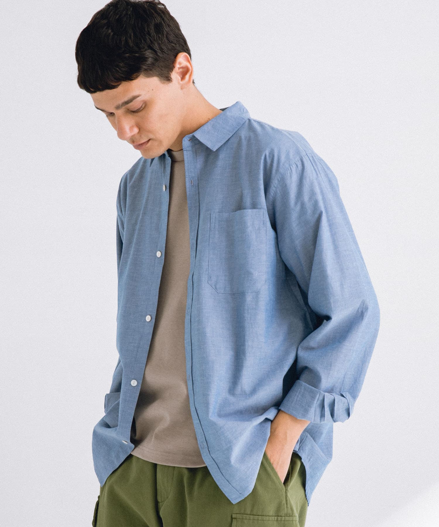 コットンシャンブレーシャツは、肌触りが非常に良く通気性もあるため、春と夏に一枚で着たいアイテムです!
