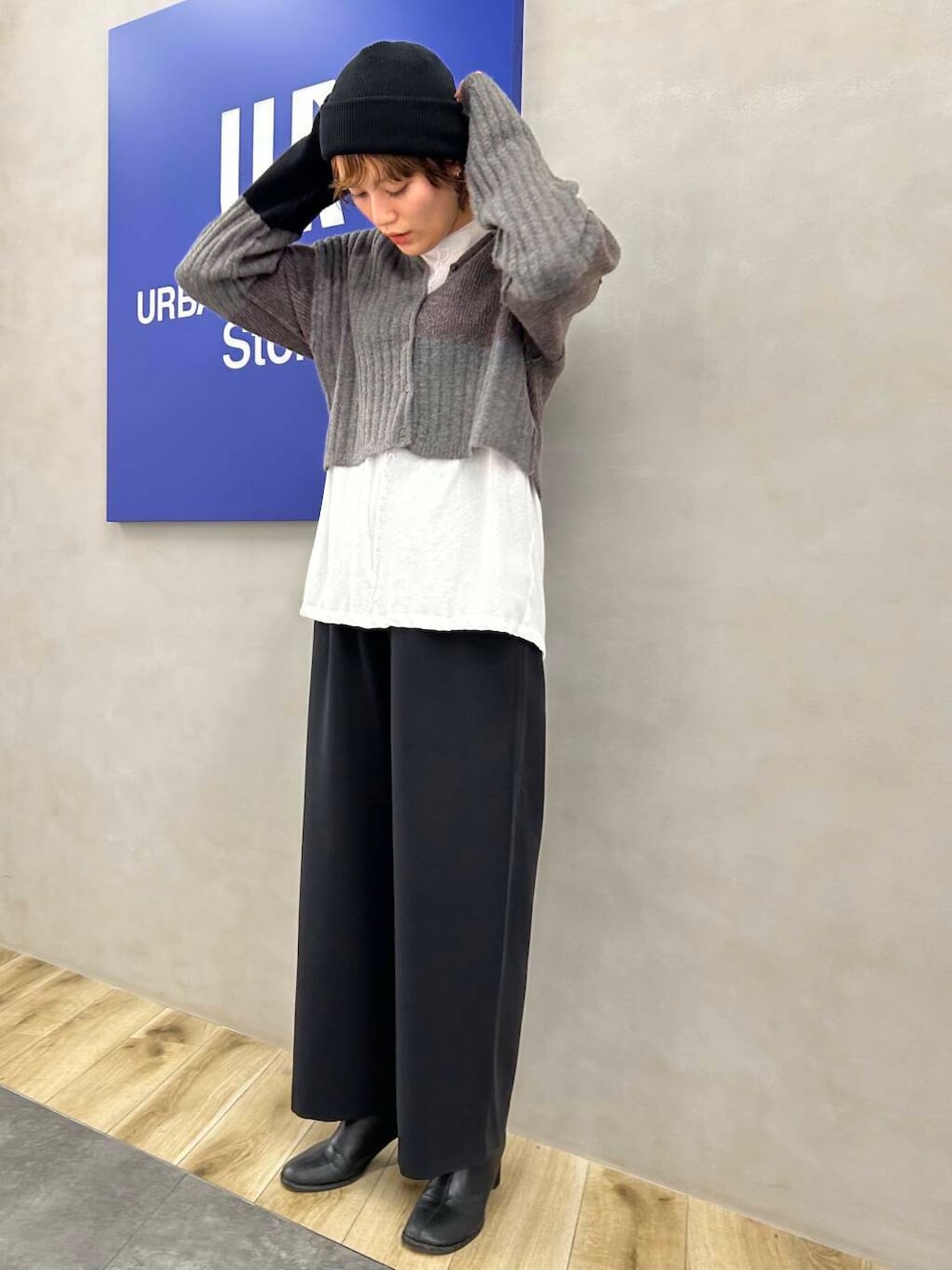 カーディガンはパンツやスカート、ワンピースにも合わせられるようなショート丈でおすすめです!