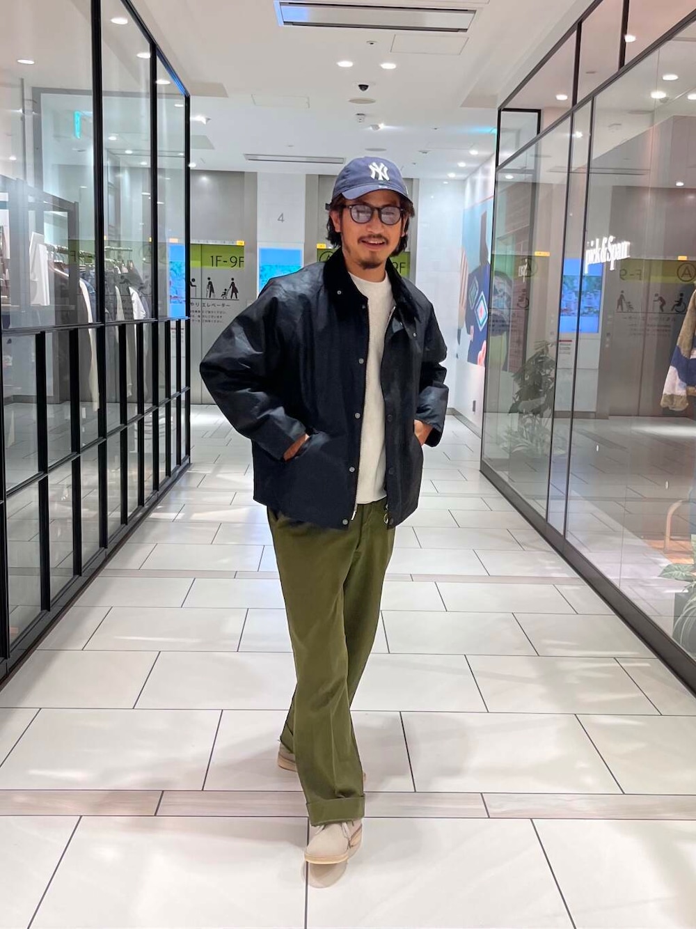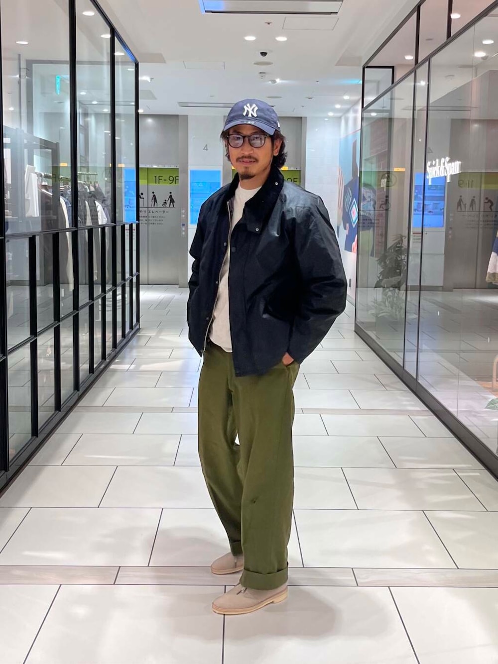 Barbour TRANSPORT WAX のコーディネートです。古着ミックスで好みです。