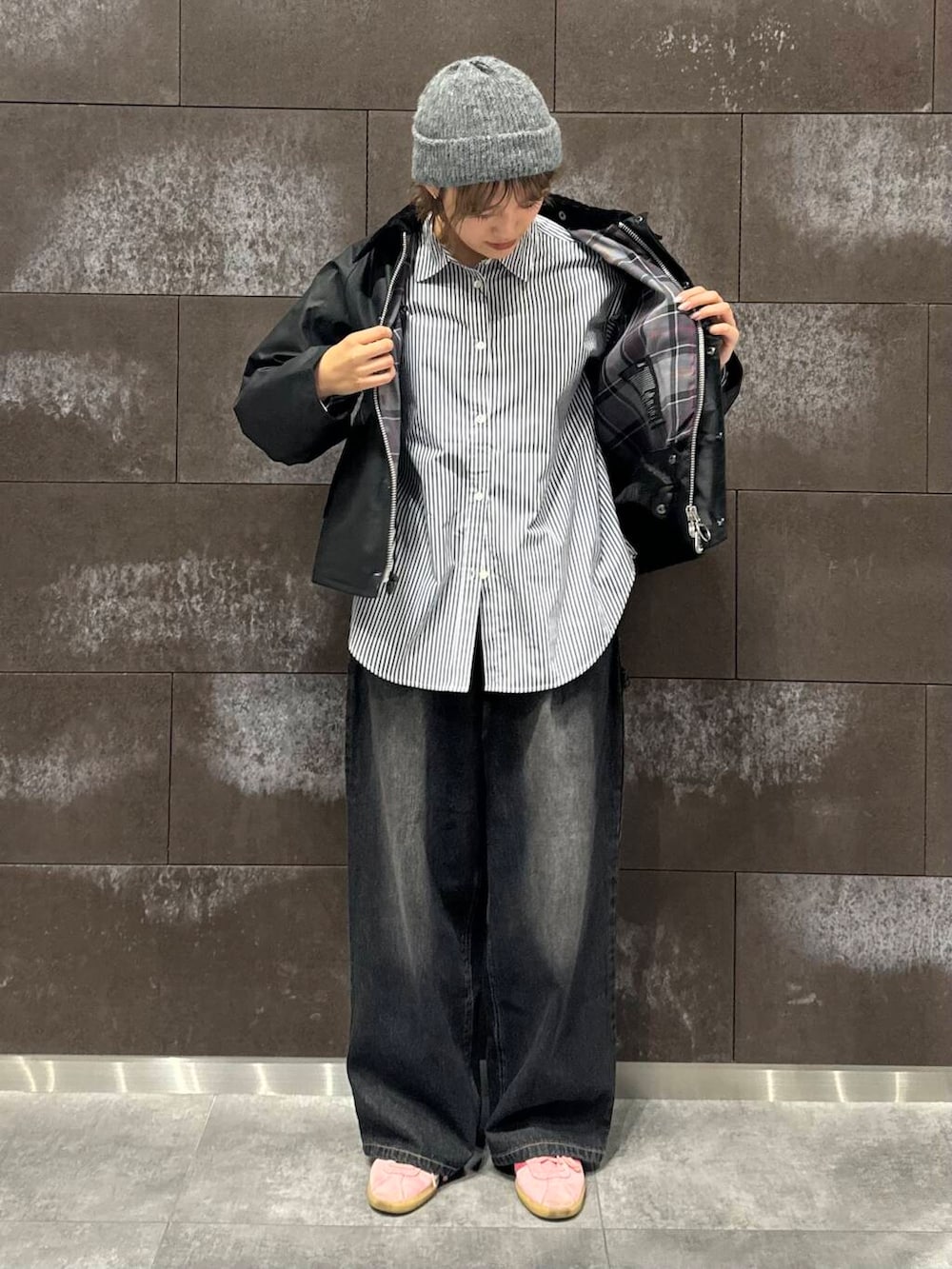 メンズライクですが、ストライプシャツで大人っぽさと女性らしさを出したスタイリングです!